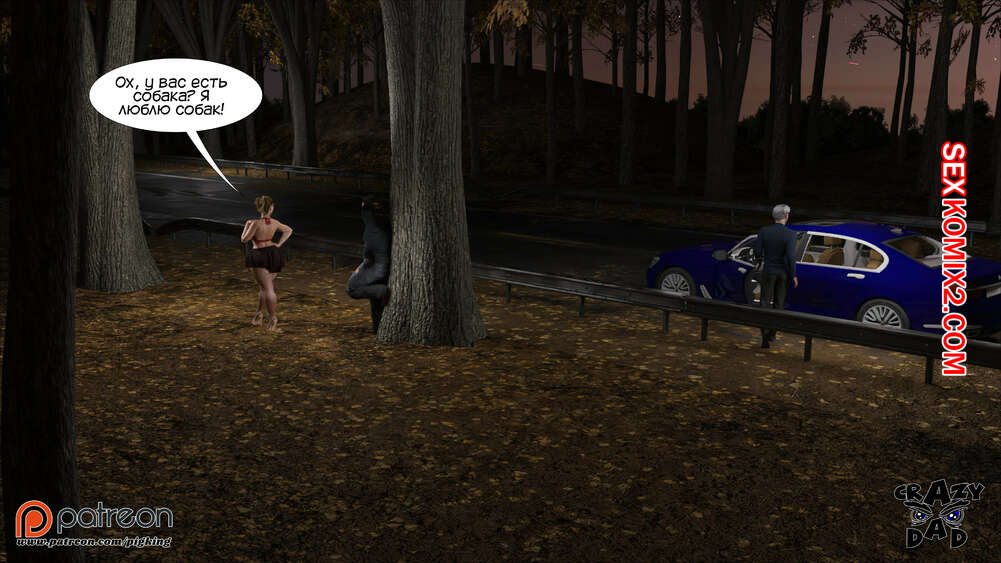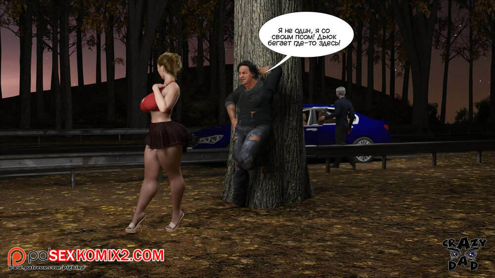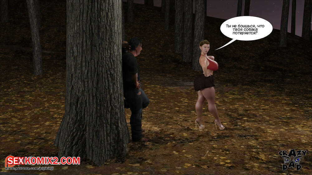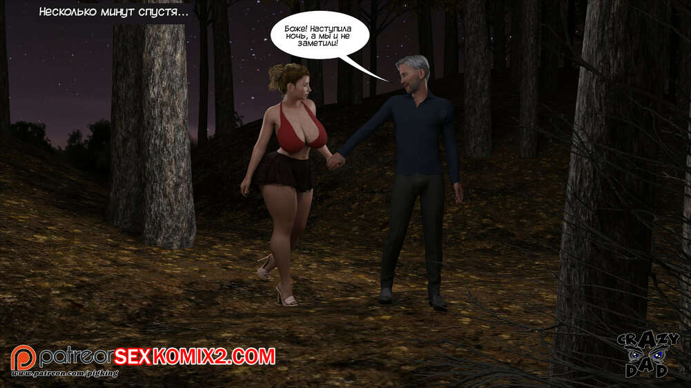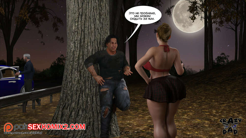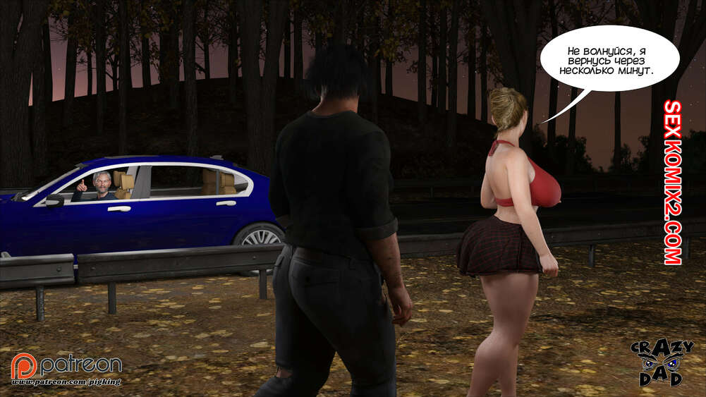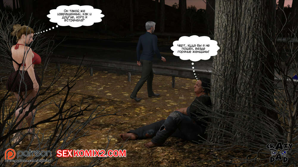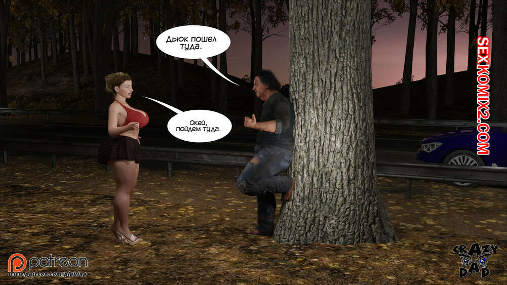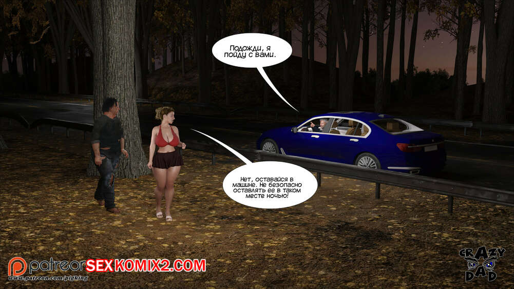 Порно комикс Свекр дома. Часть 40. Father In Law At Home. CrazyDad3D Горячая милфа Бренда наслаждается членом своего отца в лесу, но им пора возвращаться домой. Перед тем, как сесть в машину, красотка встречает бездомного парня и решает с ним повеселиться.