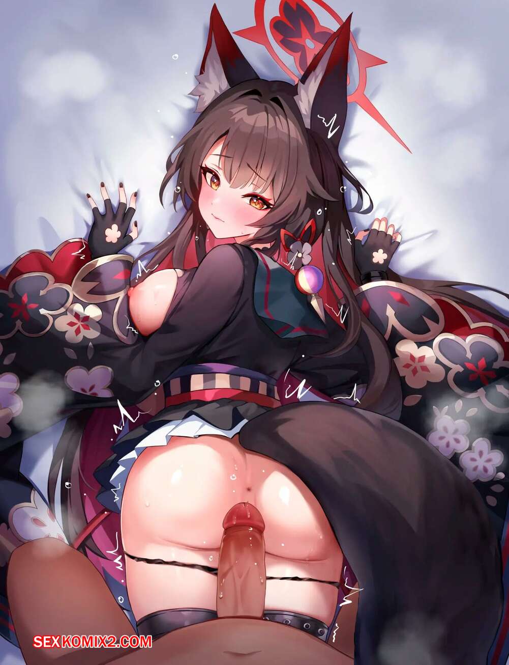 Порно комикс Blue Archive. Wakamo Kosaka. Doco Горячая брюнетка была очень возбуждена и решила повеселиться со своим дружком. Красотка разделась и возбудила парня шикарным телом, после чего дала ему себя выебать.