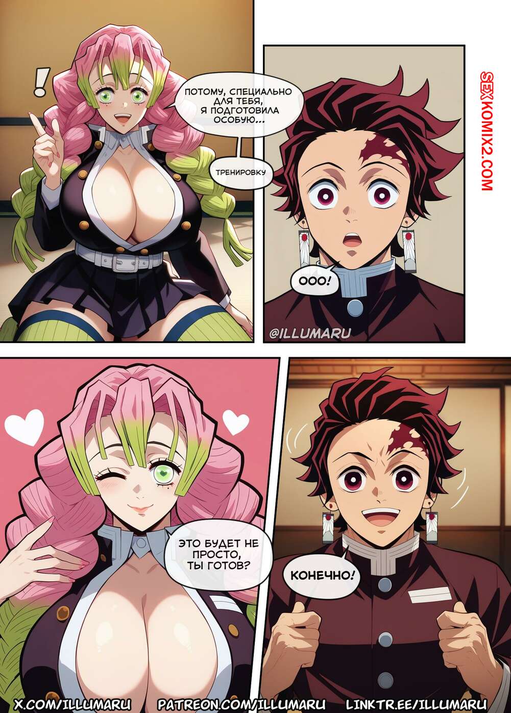Порно комикс Kimetsu no Yaiba. Тренировка столпов. Мицури. illumaru