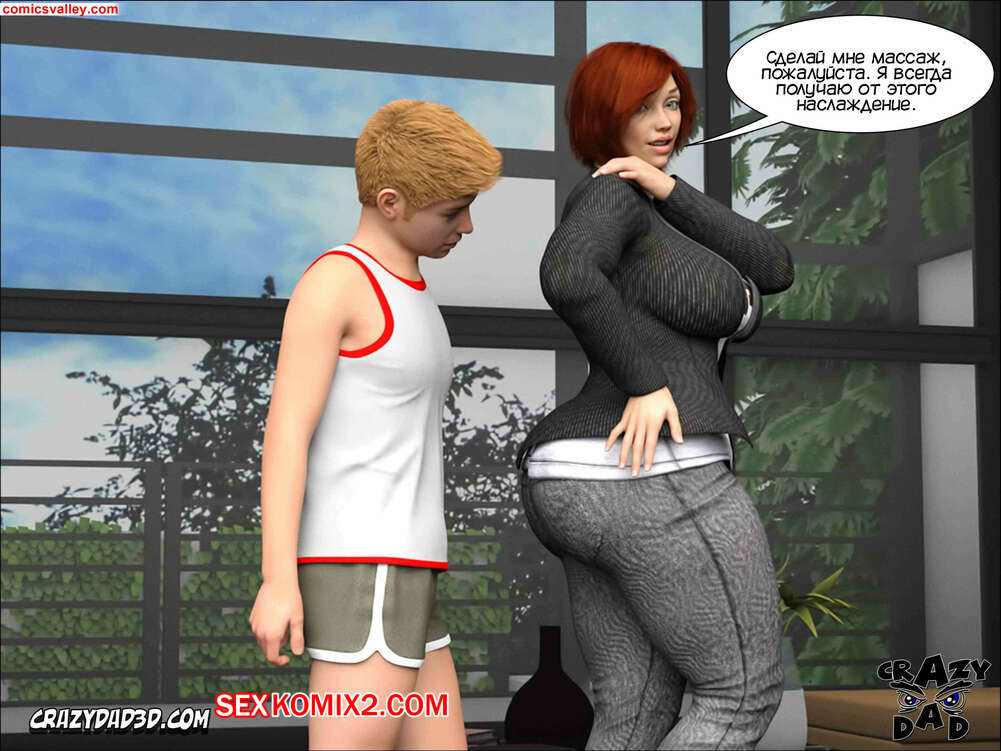 Порно комикс Приёмная мать. Часть 12. Foster Mother. CrazyDad3D Горячая милфа решила проверить, возбуждает ли она своего сына. Красотка попросила парня сделать ей массаж и надела для этого откровенный купальник, чтобы узнать мысли сына о своем теле.