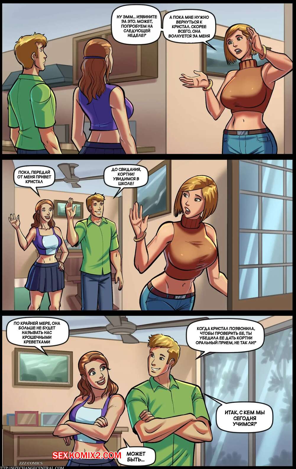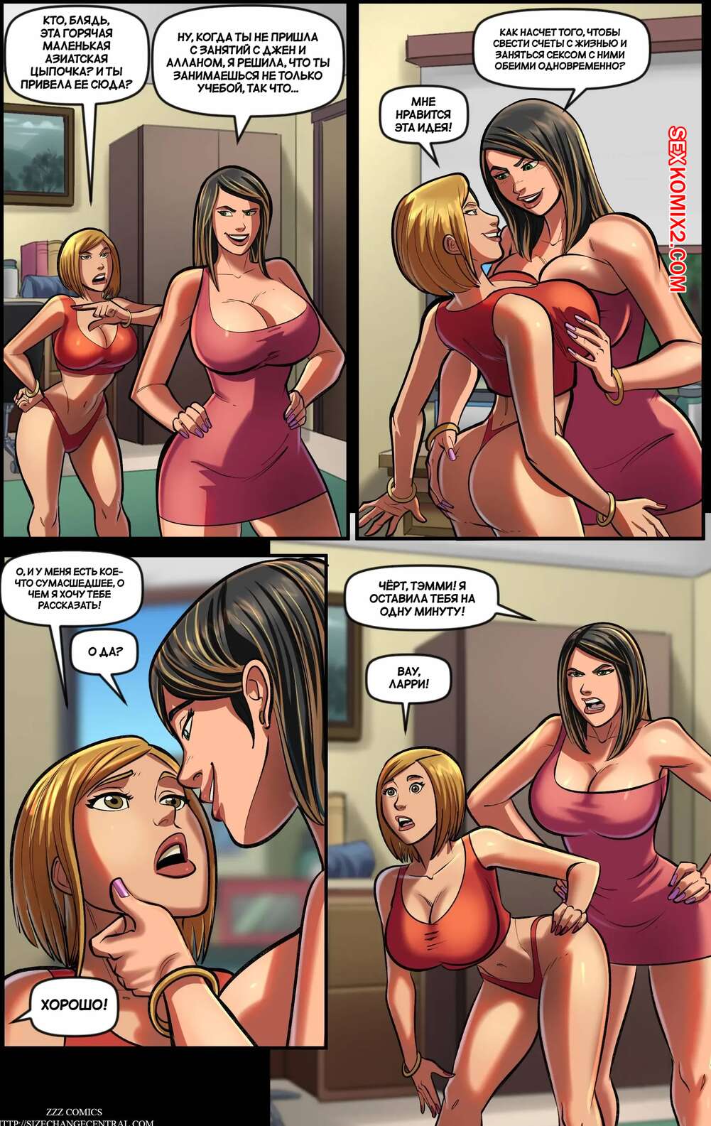 Порно комикс Еще один дюйм. Часть 2. Just One More Inch Горячие красотки увеличиваются в размерах и решают повеселиться со своим дружком. Они раздеваются и сосут огромный хуй парня, после чего дают ему себя хорошенько выебать.