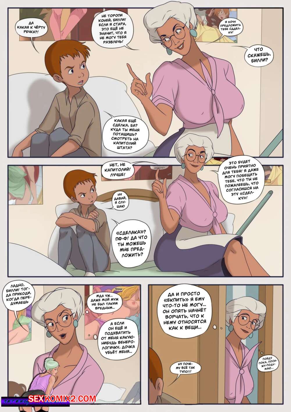 Порно комикс Время завтрака. Lunch Time. Milftoon Сисястая бабуля была очень возбуждена и решила повеселиться со своим внуком. Красотка разделась и раздвинула ножки перед парнем, после чего дала ему себя выебать.