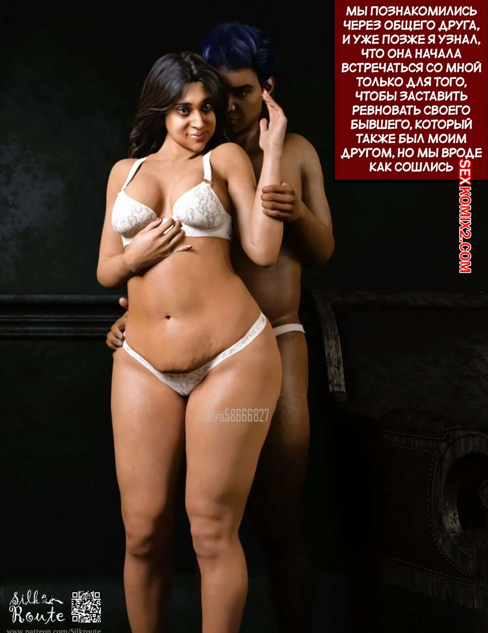 Порно комикс Сексолог. Часть 1. The Sexologist. Silk Route. Ira Raman Горячая милфа с шикарным телом обожает трахаться. Она возбудила парня в машине и стала сосать его большой хуй, после чего они решили снять номер в отеле, чтобы потрахаться.