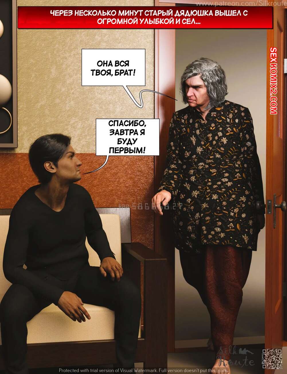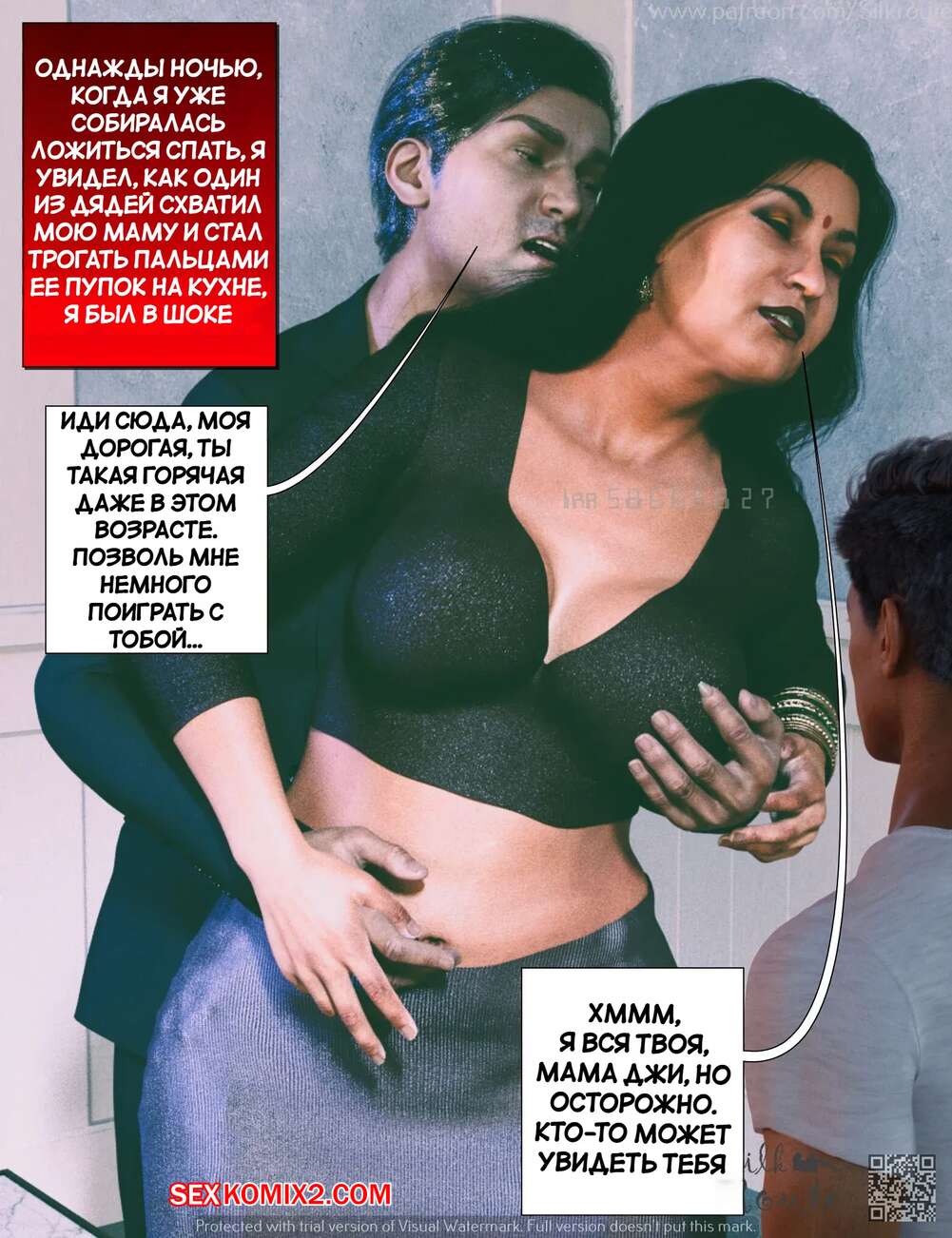 Порно комикс Для семьи. Часть 2. For The Family. Silk Route, Ira Raman Парень установил камеру слежения в комнате своей горячей мамки. Он увидел, как милфа уединилась с двумя мужиками и отсосала их большие хуи, после чего дала им себя выебать.