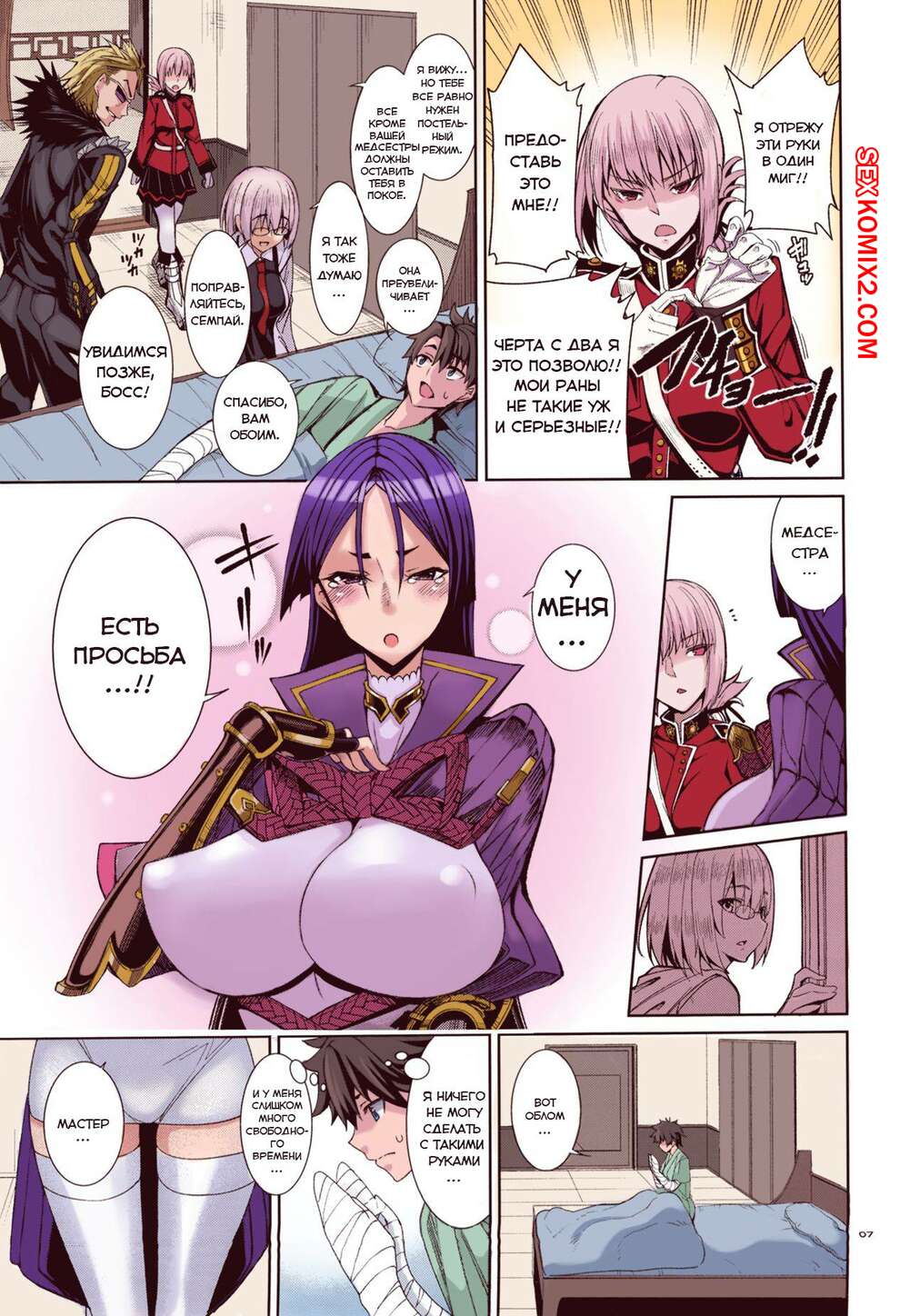 Порно комикс Медсестринское дело. В цвете. Двое парней сильно подрались и один попал в больницу, теперь его здоровье в рукой горячей медсестрички. Они прижалась к нему своими большими сиськами и парень захотел жить.