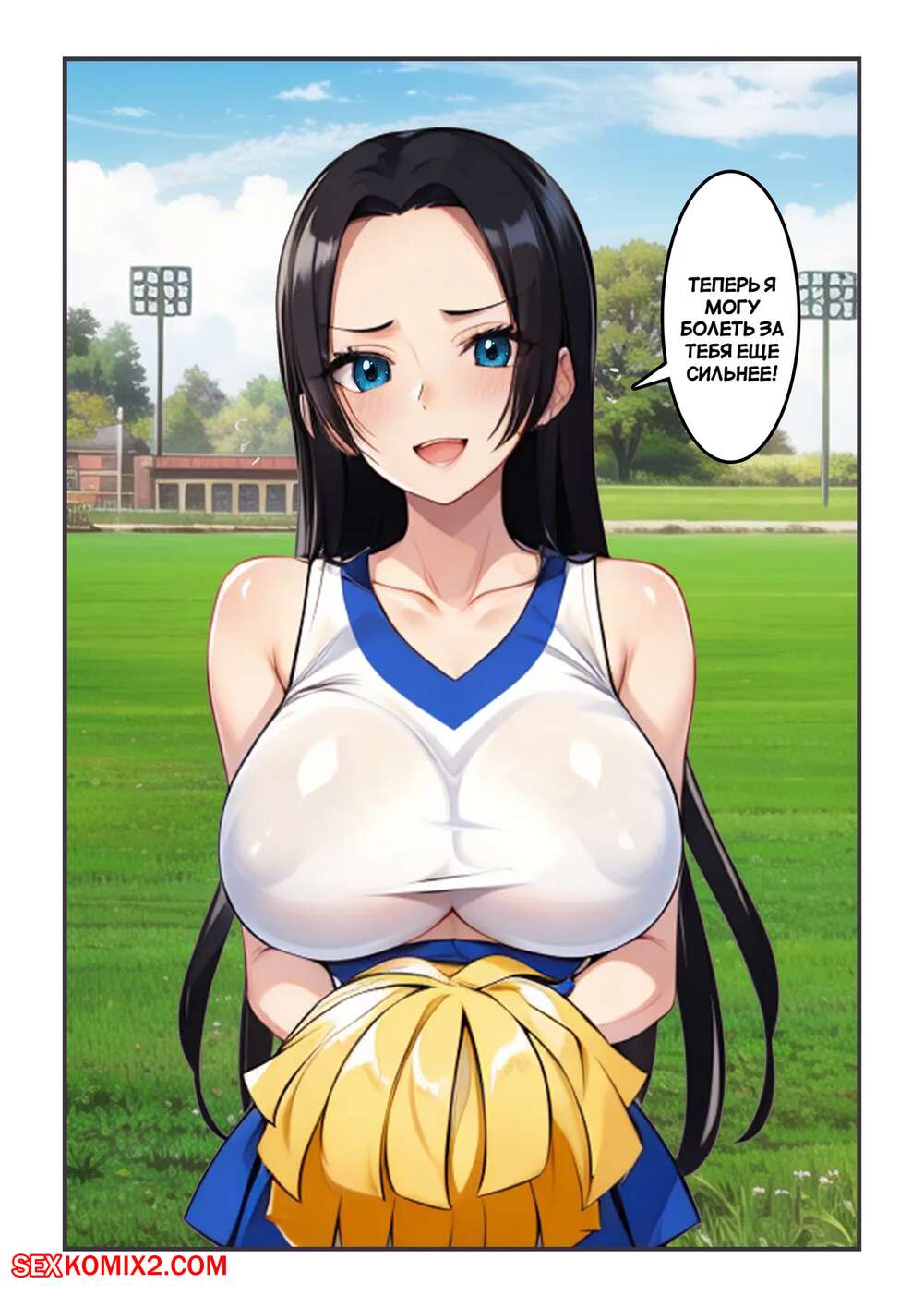 Порно комикс One Piece. Веселое завоевание. Cheerful Conquest. kahoo. Горячая брюнетка устроилась в группу поддержки, чтобы поболеть за своего дружка. После матча красотка встала на колени и отсосала хуй парня, после чего дала ему себя выебать.