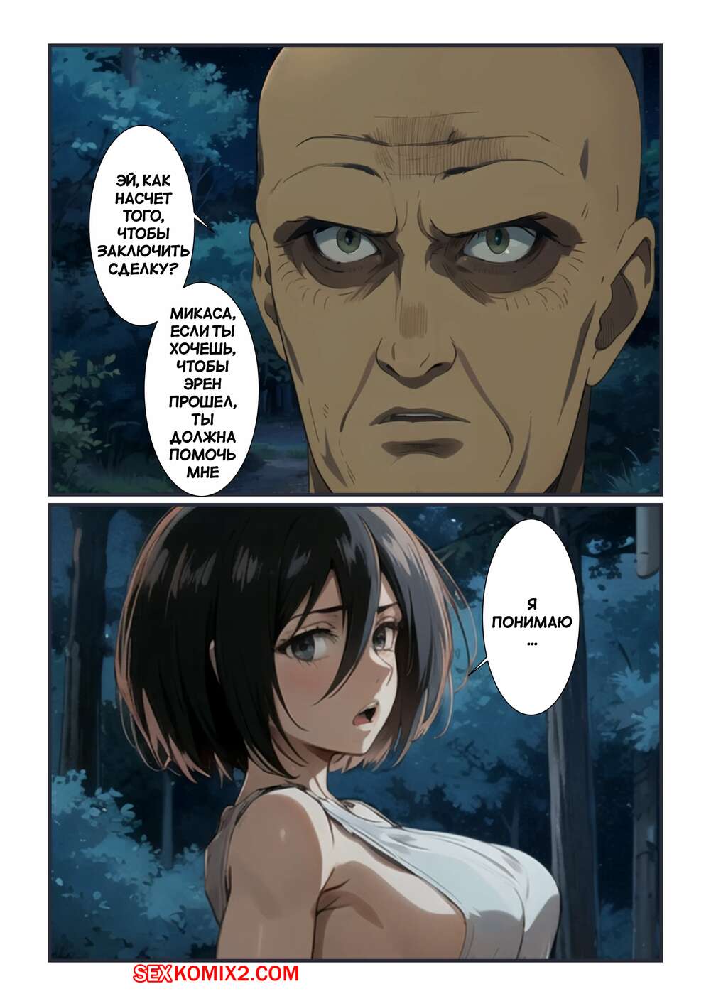 Порно комикс Атака титанов. Один шанс пройти. One Chance to Pass. Kahoo Горячая брюнетка согласилась на сделку с лысым стариком. Красотка разделась и возбудила мужика шикарным телом, после чего дала ему выебать свою пизденку.