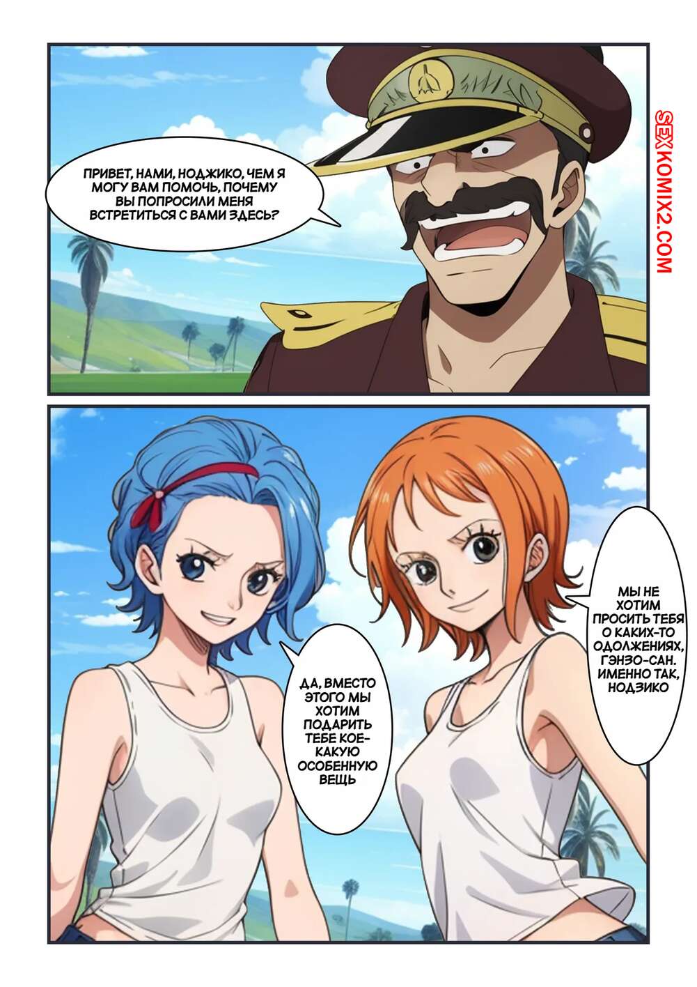 Порно комикс One Piece. Объятия океана. Oceanic Embrace. Kahoo Две горячие подруги решили отблагодарить Гэнзо Сана за все, что он для них делал. Красотки разделись и возбудили мужика шикарным телом, после чего дали ему себя выебать.