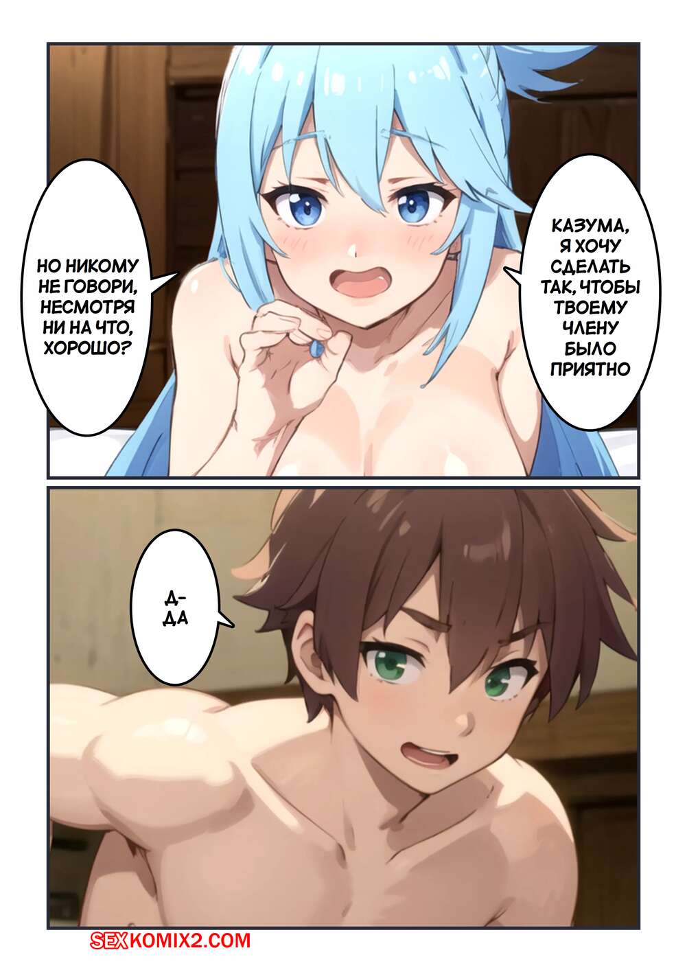 Порно комикс Konosuba. Секрет Аквы. Aqua Secret. Kahoo Горячая красотка Аква была очень возбуждена и решила повеселиться со своим дружком. Девушка разделась и отсосала большой хуй парня, после чего дала ему себя выебать.