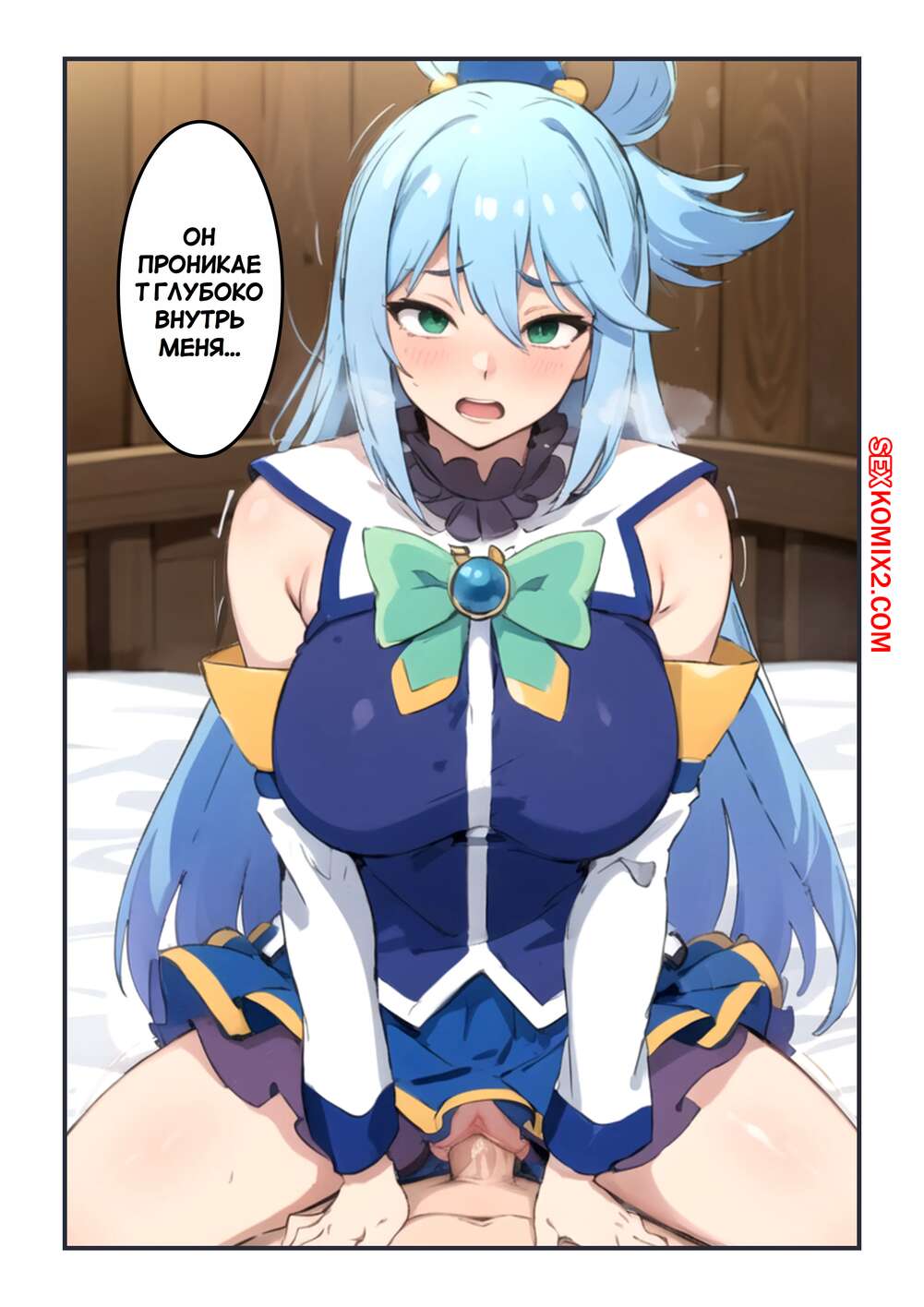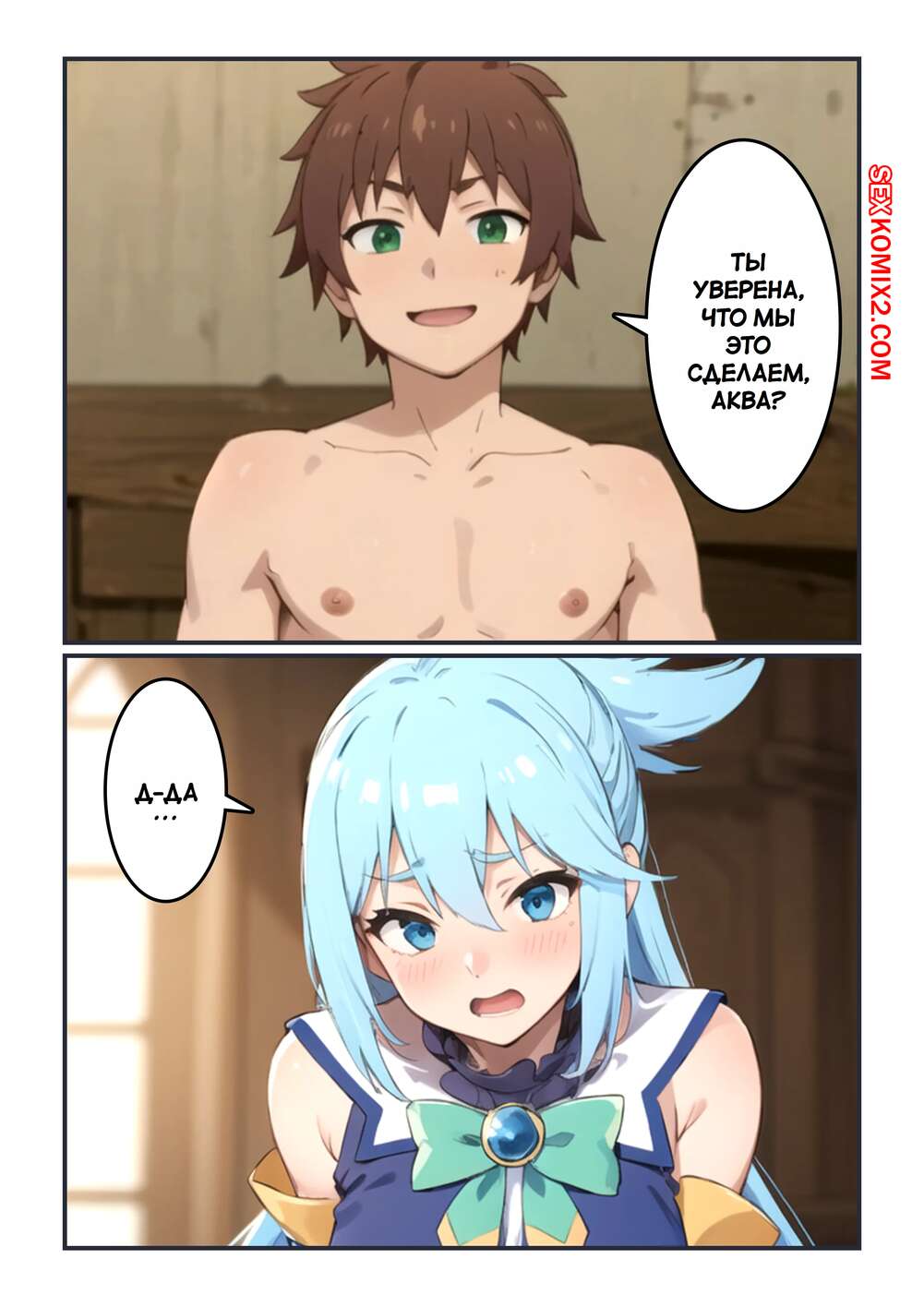 Порно комикс Konosuba. Казума и Аква. Kazuma X Aqua. Kahoo Горячая красотка Аква была очень возбуждена и решила повеселиться со своим дружком. Она разделась и возбудила парня шикарным телом, после чего дала ему себя выебать.