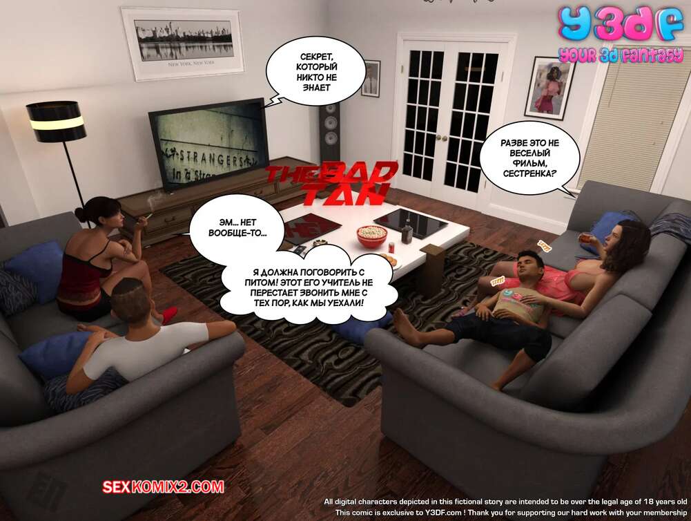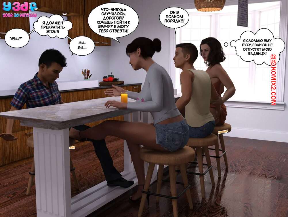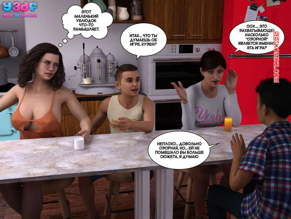 Порно комикс Плохой загар. Часть 1. The Bad Tan. Y3DF. Горячая милфа была очень возбуждена и решила повеселиться со своим спящим сыном. Красотка достала член парня и стала тереться о него своей пизденкой, после чего дала ему себя трахнуть.