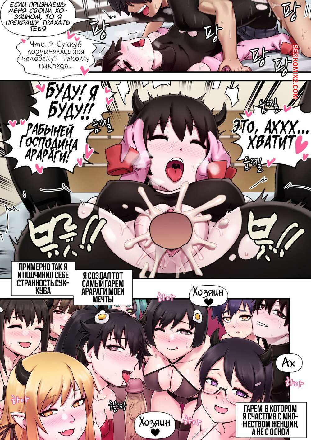 Порно комикс Bakemonogatari. История суккуба. Mackgee Горячие красотки без ума от большого члена своего дружка. Они раздеваются и соблазняют парня шикарными телами, после чего раздвигают ножки и дают ему себя выебать.