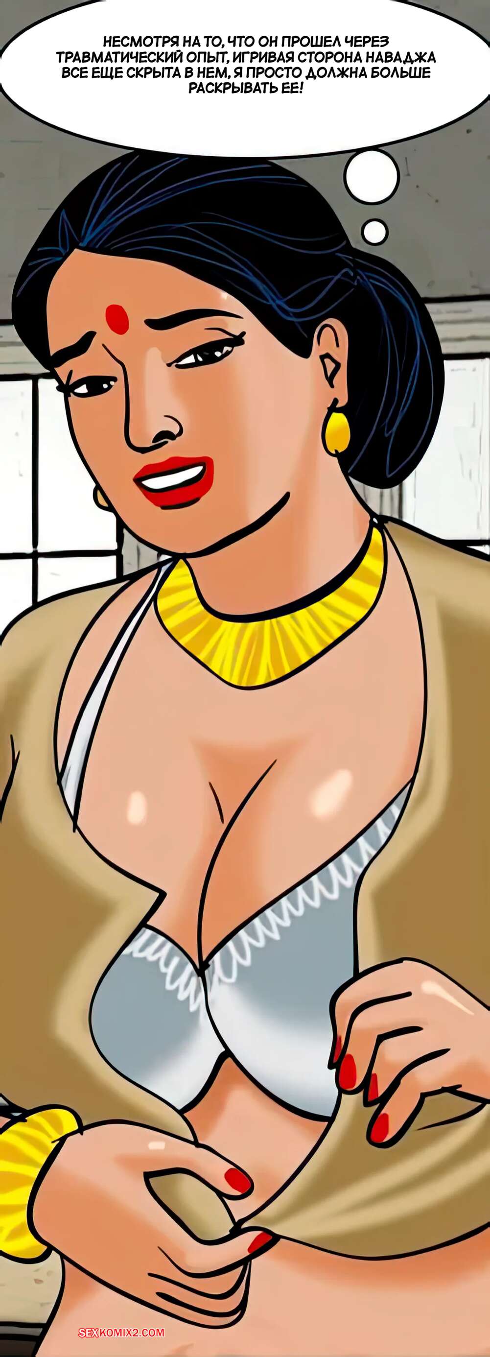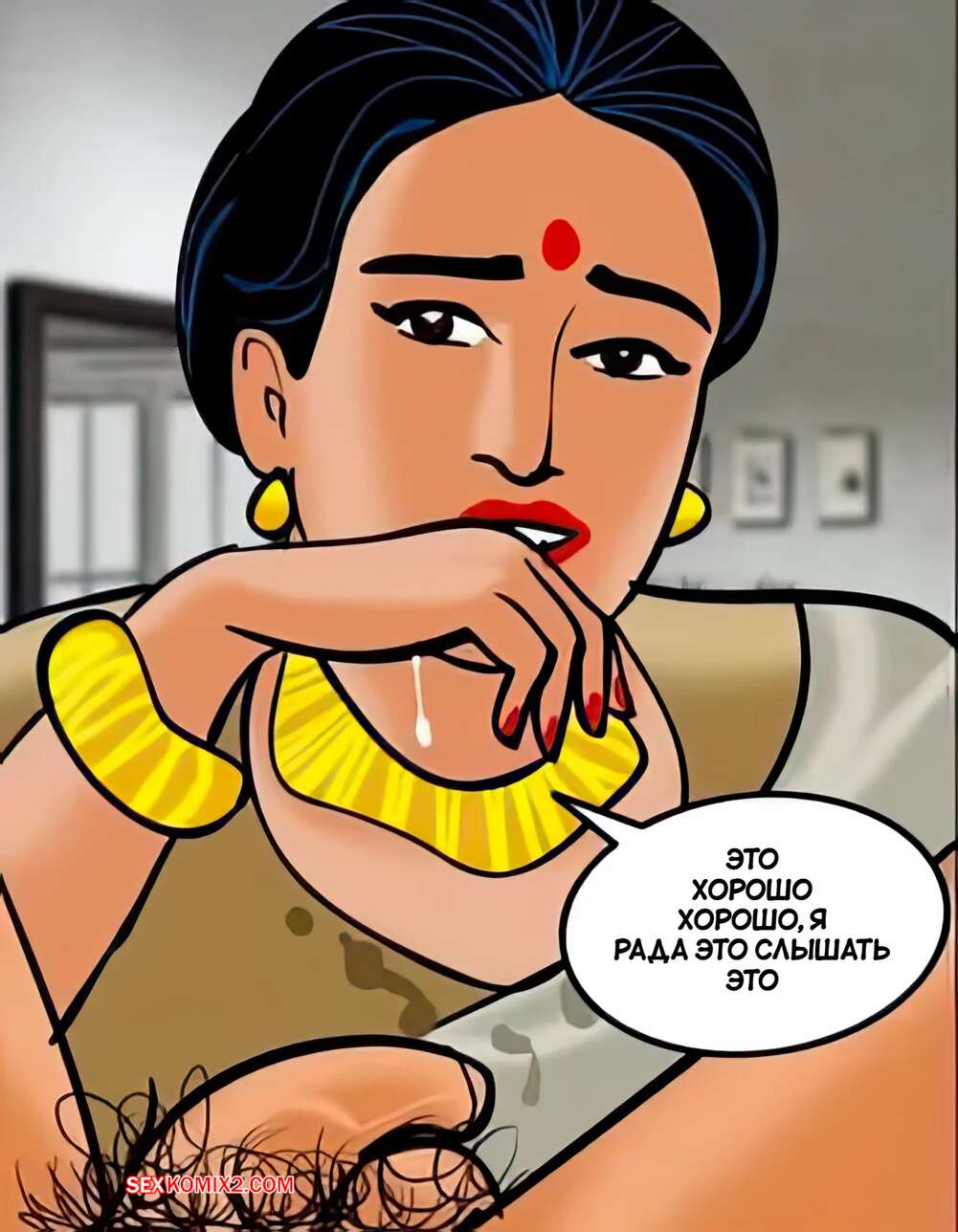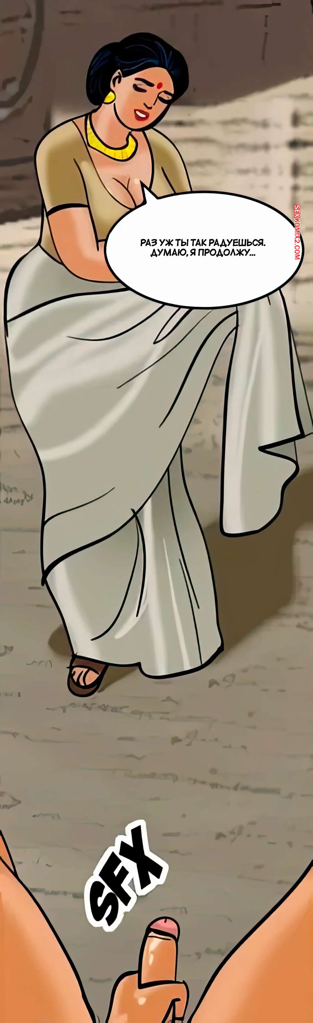Порно комикс Веламма. Часть 33. Velamma. Velamma Горячая милфа с шикарным телом была очень возбуждена и решила повеселиться со своим дружком. Она встала на колени и отсосала большой хуй парня, после чего дала ему себя выебать.
