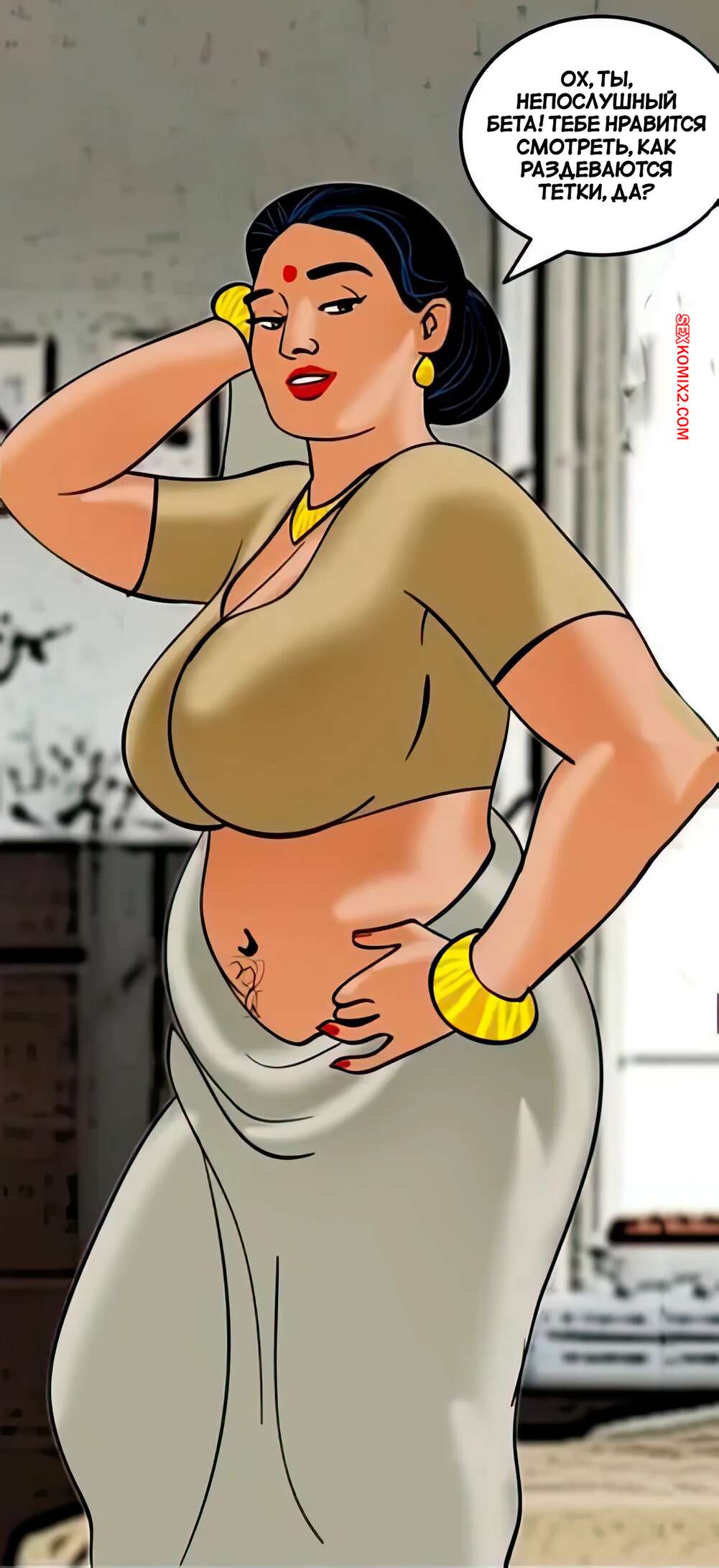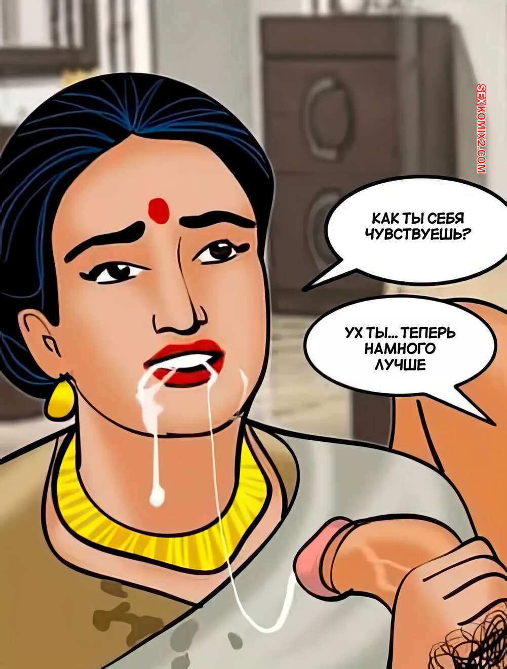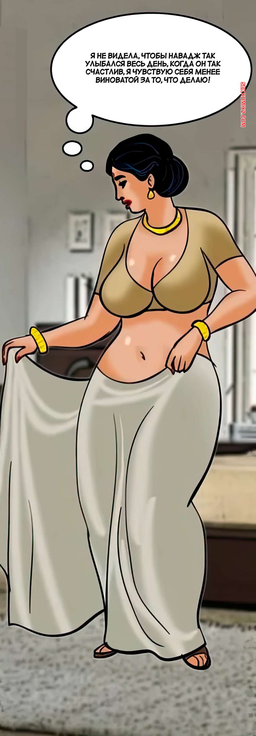 Порно комикс Веламма. Часть 33. Velamma. Velamma Горячая милфа с шикарным телом была очень возбуждена и решила повеселиться со своим дружком. Она встала на колени и отсосала большой хуй парня, после чего дала ему себя выебать.