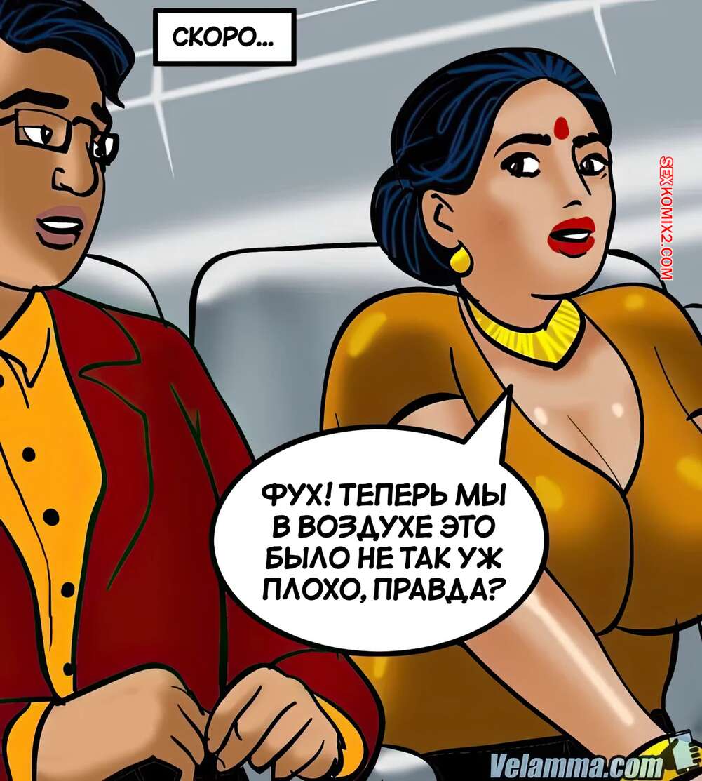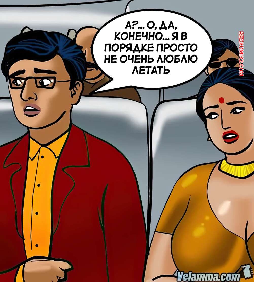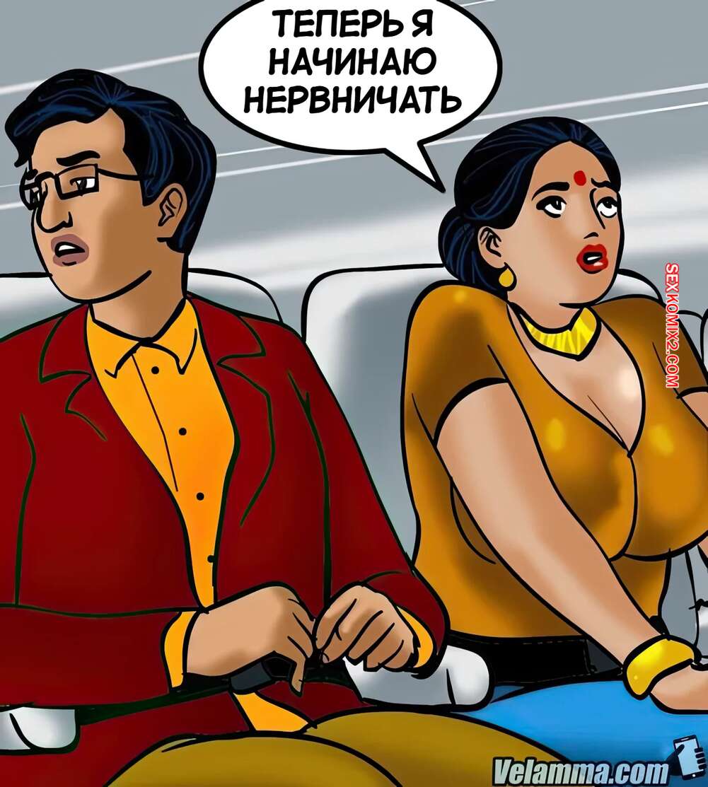 Порно комикс Веламма. Часть 56. Velamma. Velamma Веламма летела в самолете, где привлекла внимание многих мужчин. Красотка уединяется с ними по очереди и обслуживает их большие члены, доставляя парням удовольствие.