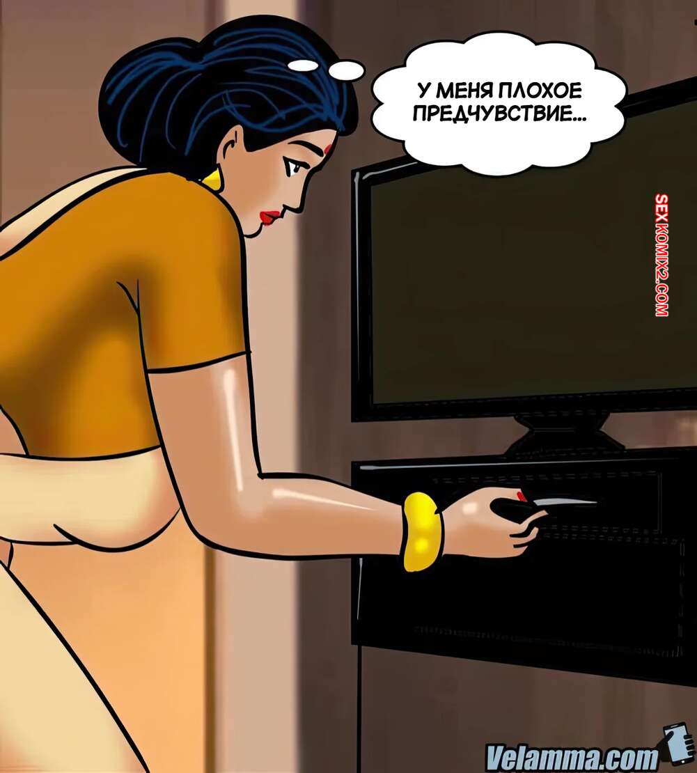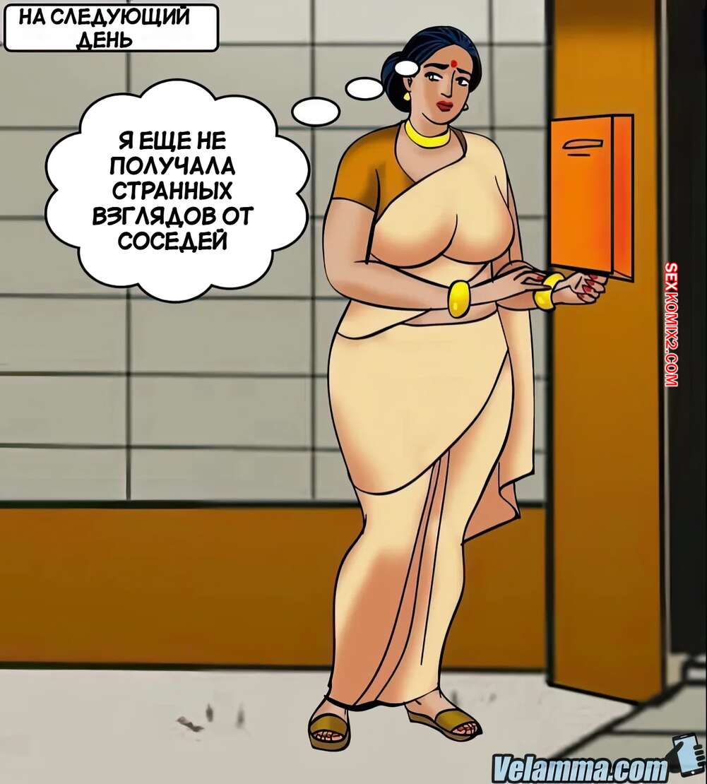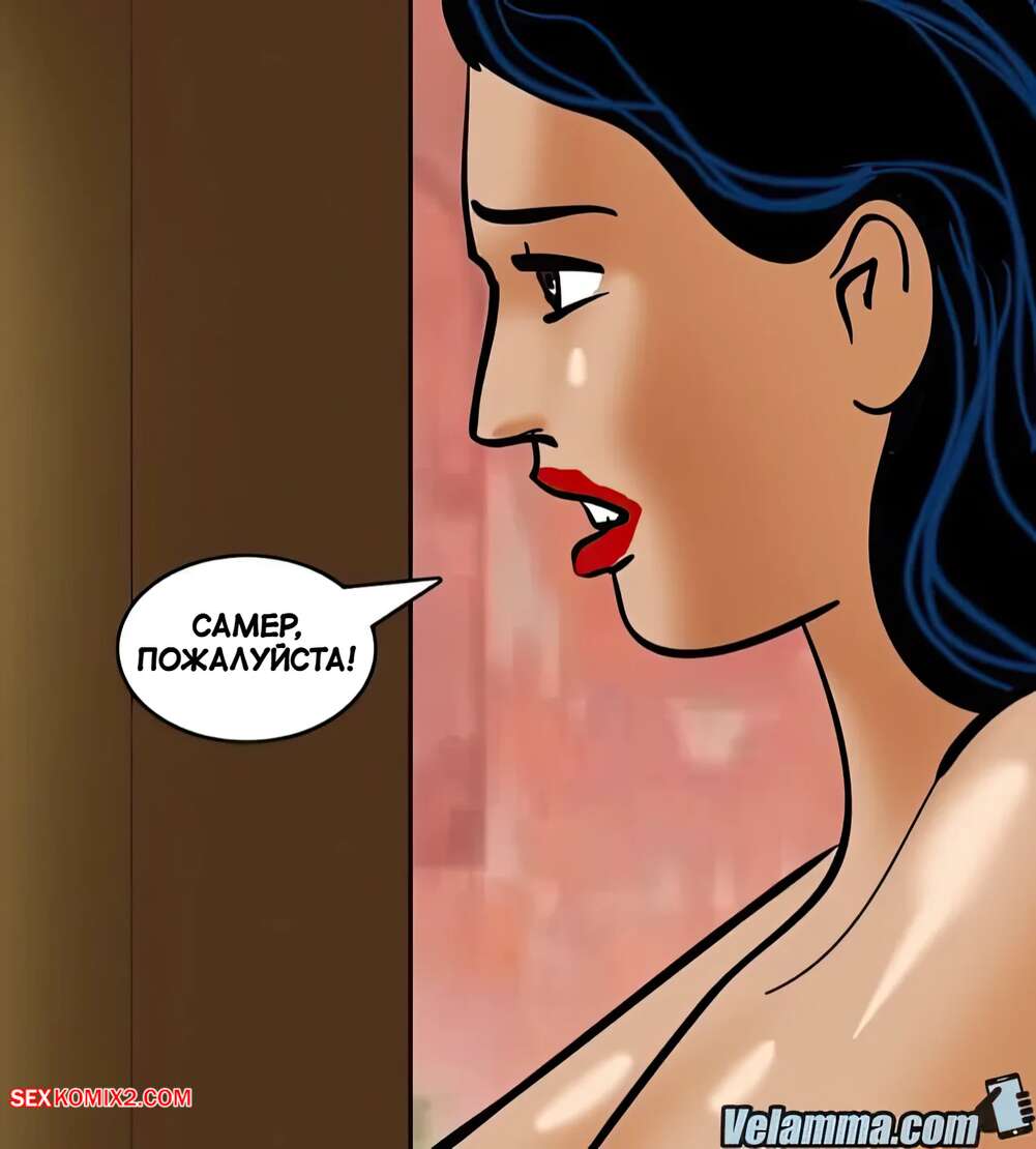Порно комикс Веламма. Часть 63. Velamma. Velamma Голая Веламма не могла попасть домой и обратилась за помощью к соседу. Он поставил красотку на колени и дал ей отсосать свой большой хуй, после чего выебал ее пизденку.