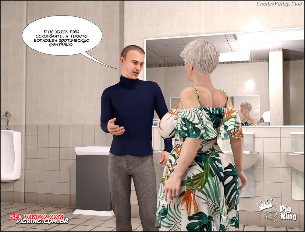 Порно комикс Гаммер. Баттерфейс. Часть 9. Gammer. Butterface. PigKing Доусон с кайфом трахал Мейбл в общественном туалете, но их спалил работник, который собирался вызвать полицию. Доусон предложил ему устроить групповуху с сексуальной старушкой в обмен на то, чтобы он не вызывал копов.