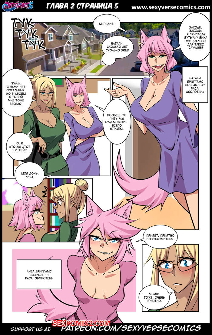 Порно комикс Deviants. Reboot. Часть 2. Чем больше, тем сексуальнее Еще одна подруга милфы блондинки попросила ее посидеть с ее дочерью, пока она сама отправилась в гости к уже знакомой нашей мулаточке. Дам они устроили групповуху с сыном блондинки, который просто не мог поверить своему счастью.. Но его мамаше тоже перепало, ведь она устроила лесбийскую еблю с повзврослевшей дочкой своей подруги.
