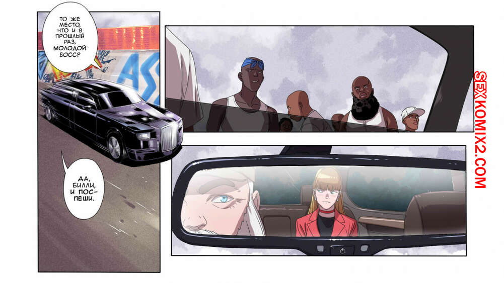Порно комикс Покатушки мисс Юлии Юная мажорка приказала своему водителю отвезти ее в любимое место. Там она встретилась в подворотне с толпой черных парней и потребовала выебать ее как можно жестче и кончить ей на лицо.