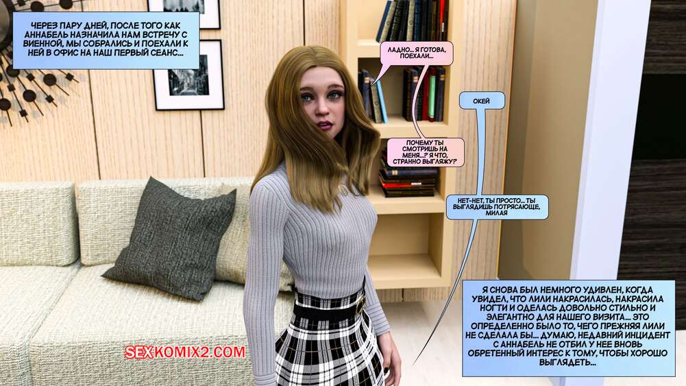 Порно комикс Новые соседи. Часть 14. The New Neighbors. Antalore42 Лили узнала, что Адам смотри порно со своими соседями, и это ей очень не понравилось. Они отправились к психологу, которая помогла им наладить отношения. Но вскоре Адам вновь вернулся к просмотру порно с Аннабель.