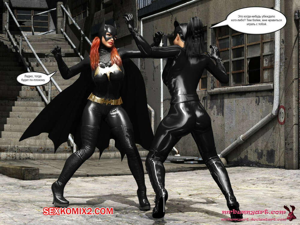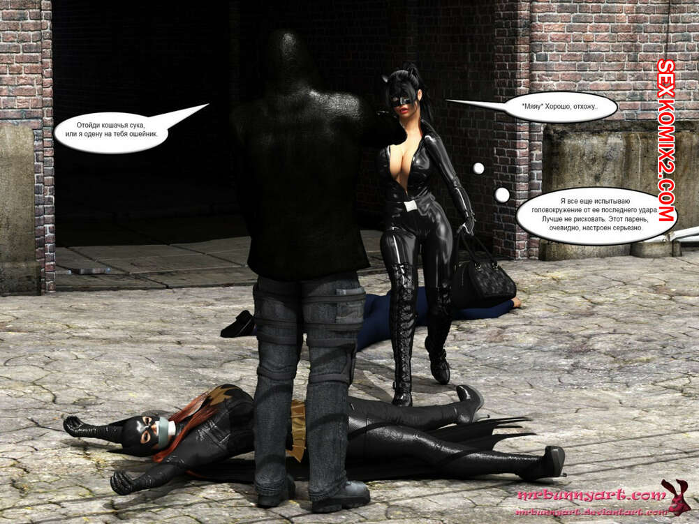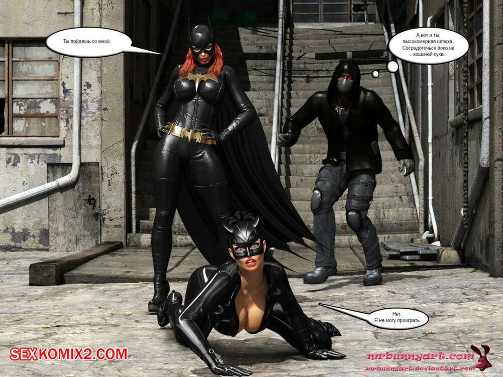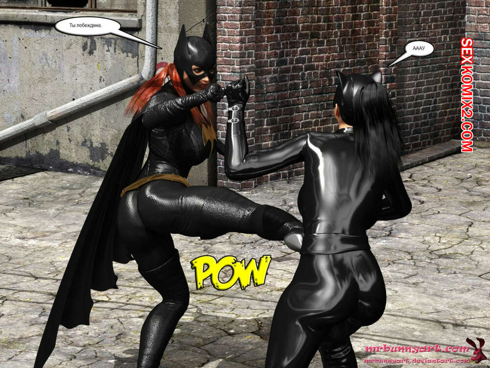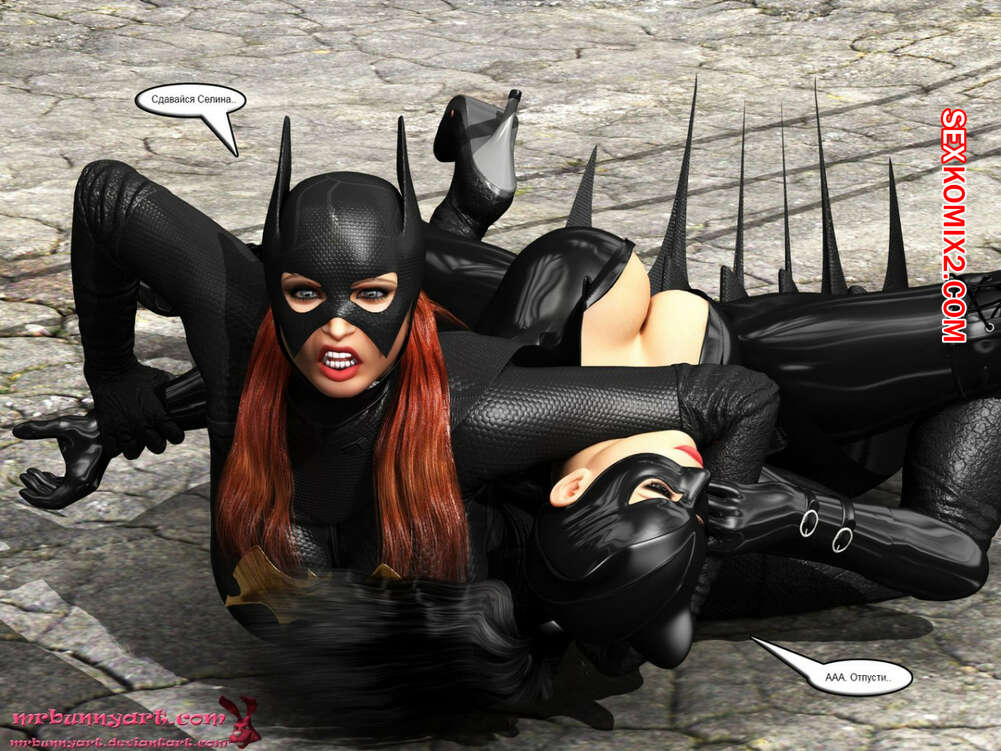 Порно комикс MrBunnyArt. Batgirl vs Cain Во время схватки Бэтгерл с Женщиной кошкой на нее напал черный парень. Он схватил ее и отвел в свое логово, чтобы сделать из нее секс рабыню и выебать своим большим черным хуем. Но ее спасла Женщина кошка, которая отвела ее к себе домой, чтобы связать и выебать большим черным страпоном.
