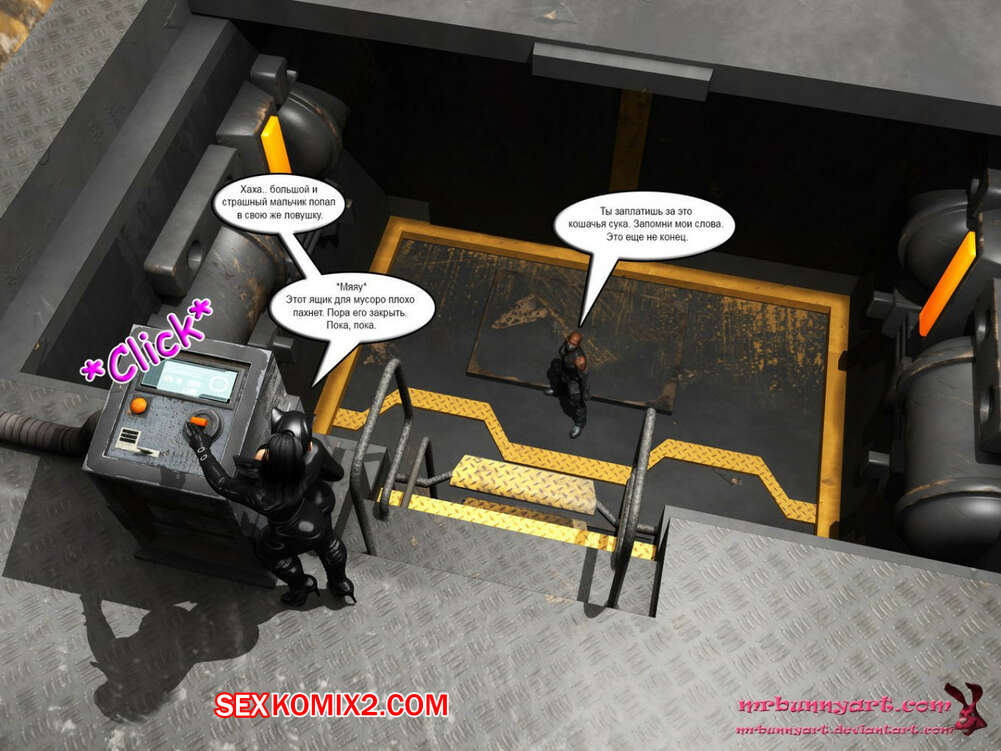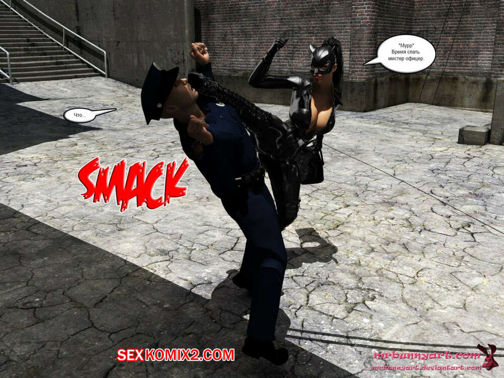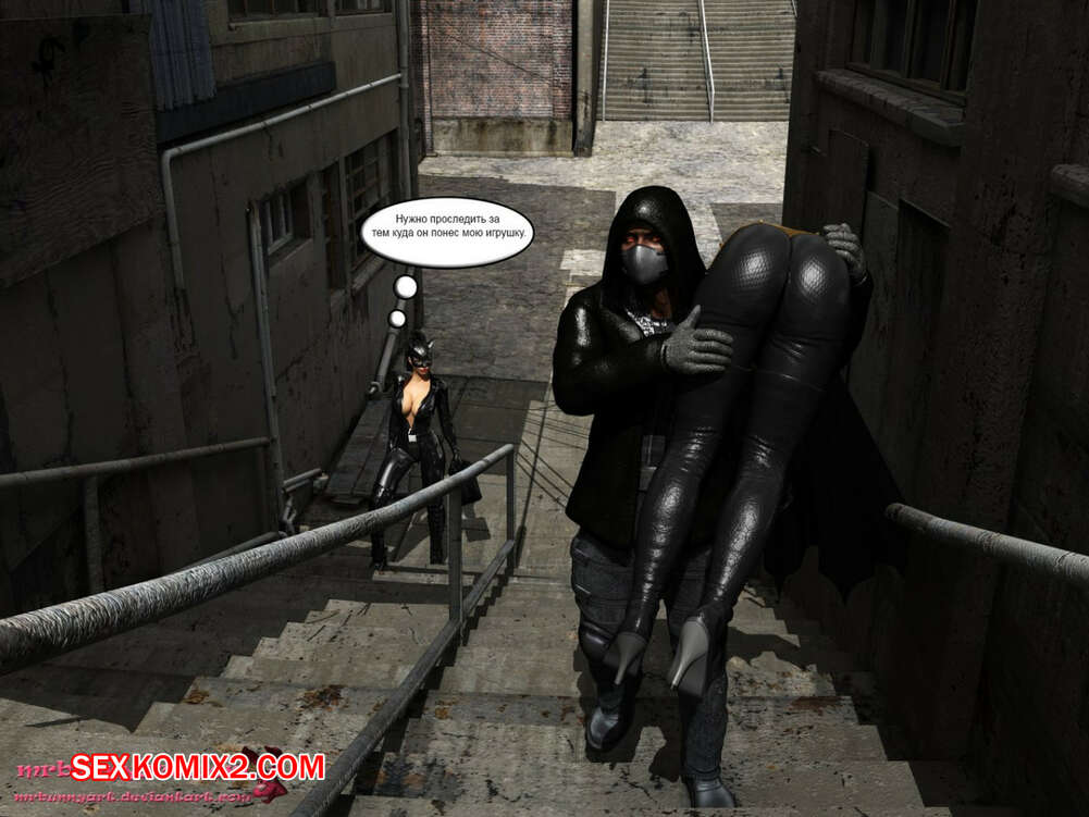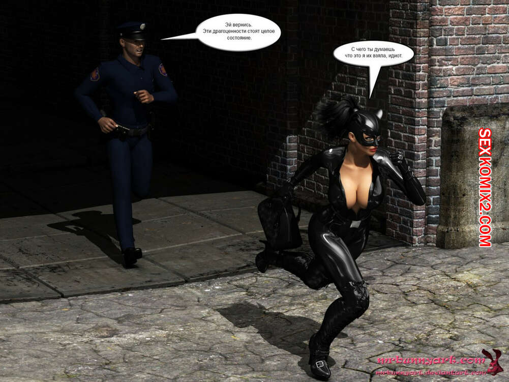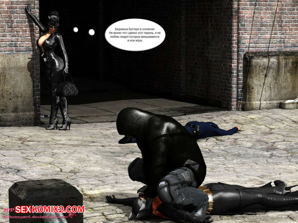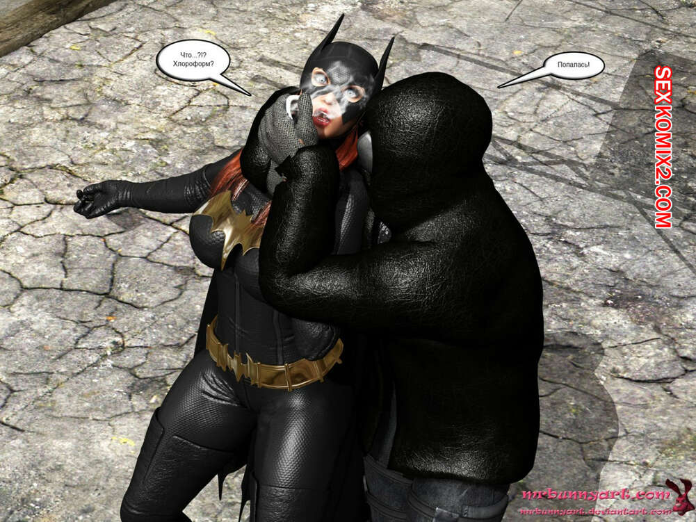 Порно комикс MrBunnyArt. Batgirl vs Cain Во время схватки Бэтгерл с Женщиной кошкой на нее напал черный парень. Он схватил ее и отвел в свое логово, чтобы сделать из нее секс рабыню и выебать своим большим черным хуем. Но ее спасла Женщина кошка, которая отвела ее к себе домой, чтобы связать и выебать большим черным страпоном.