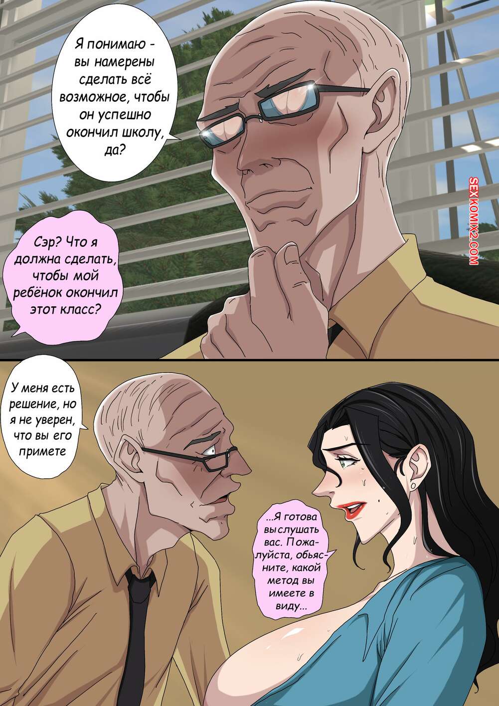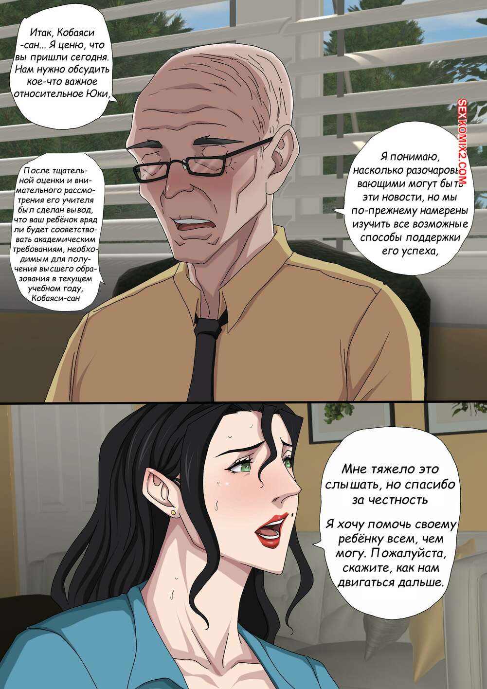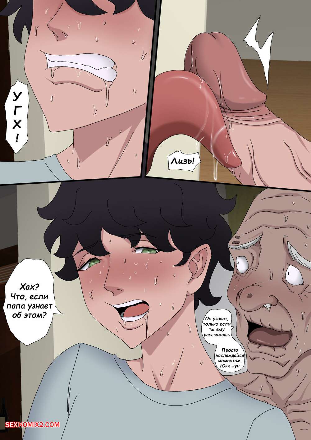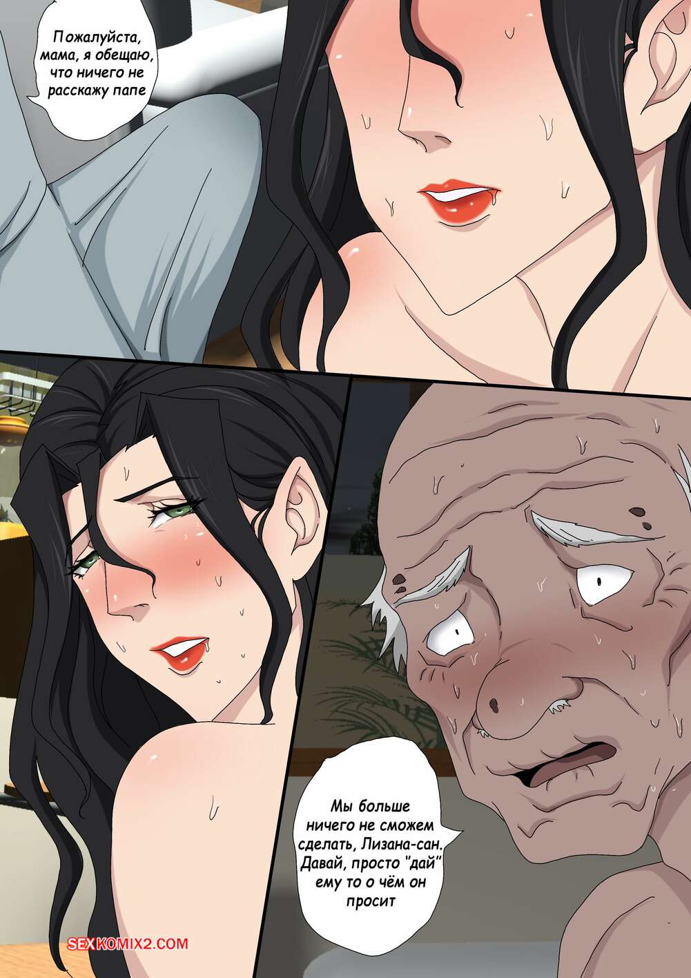 Порно комикс Греховная похоть. Часть 5.2 и 5.3. Sinful Lust. Tsumibukai yokubo Молодой парнишка спалил как его мамка трахается со стариком. Красотка хочет сохранить тайну, поэтому она стала сосать член сына, пока старик продолжал ее трахать.