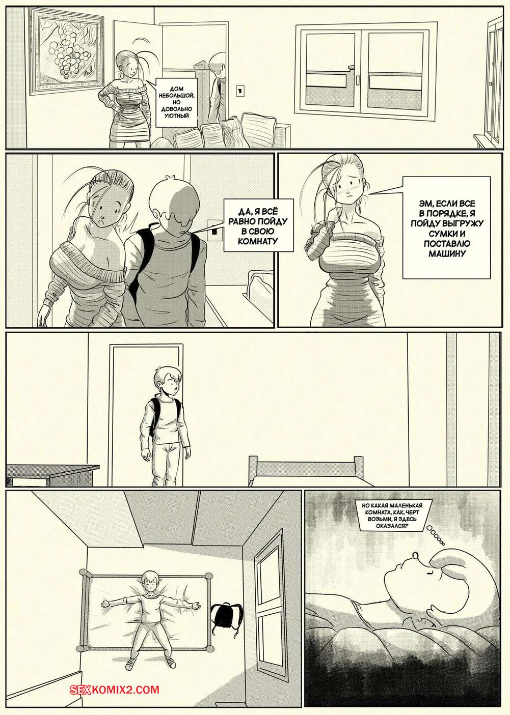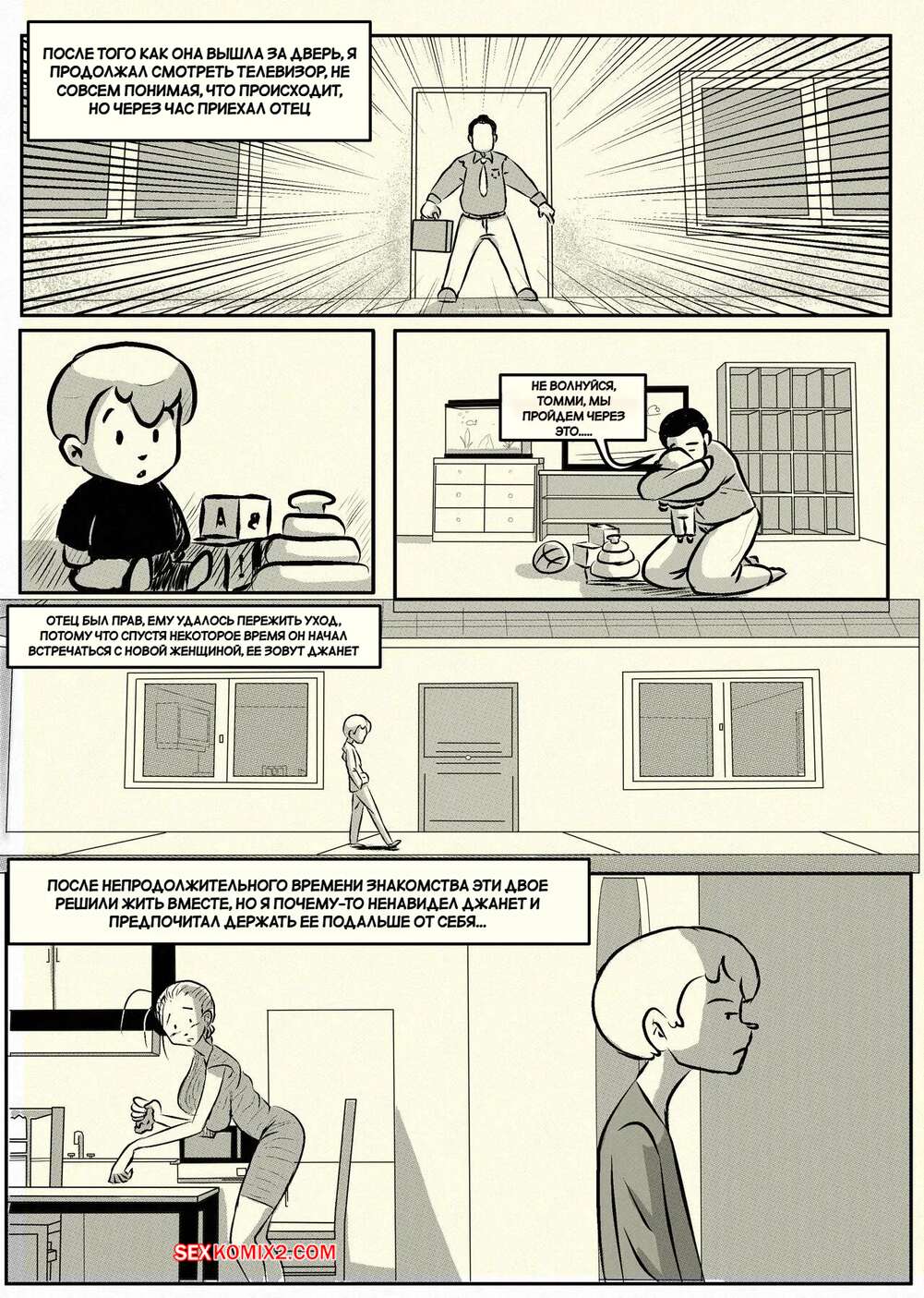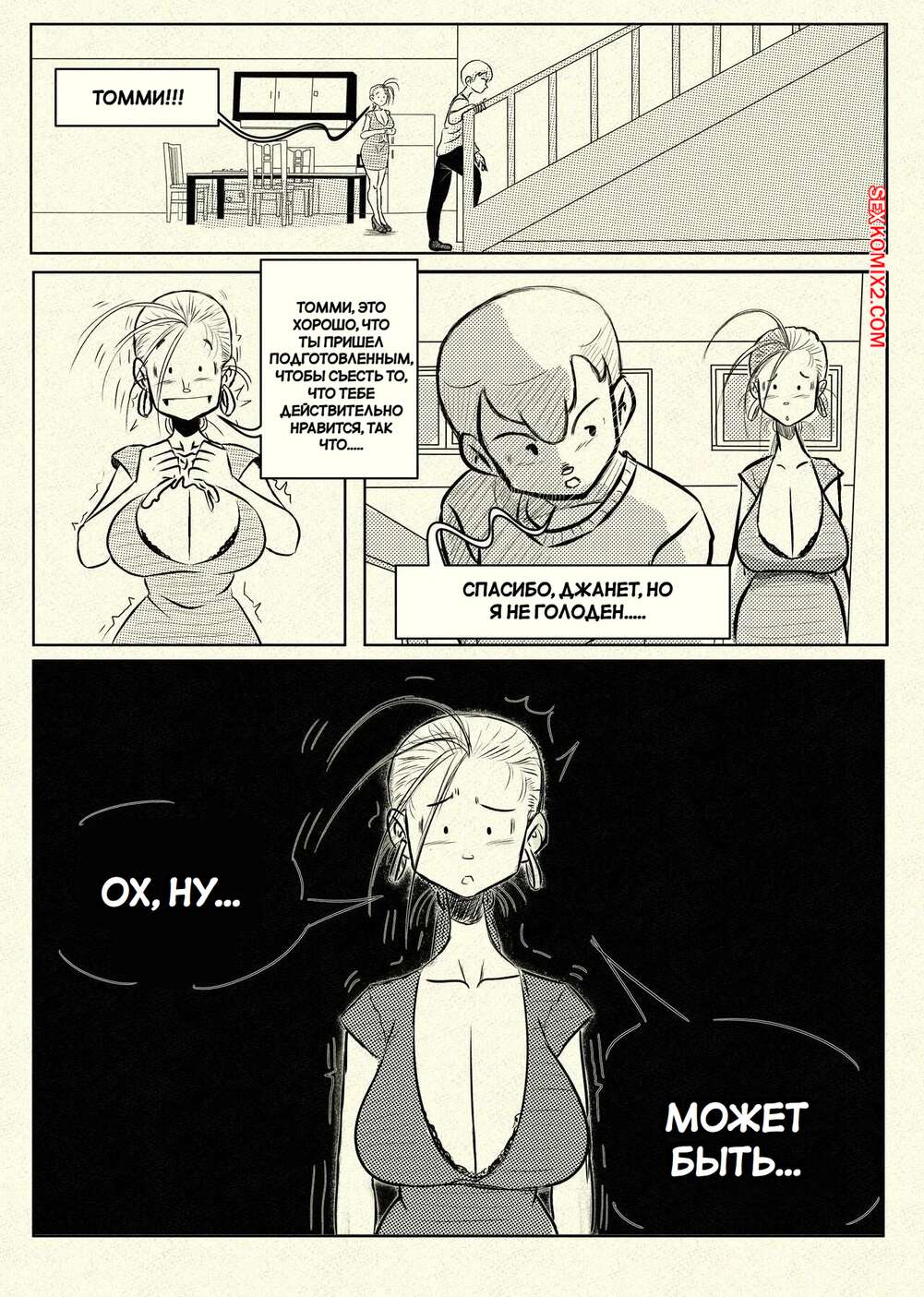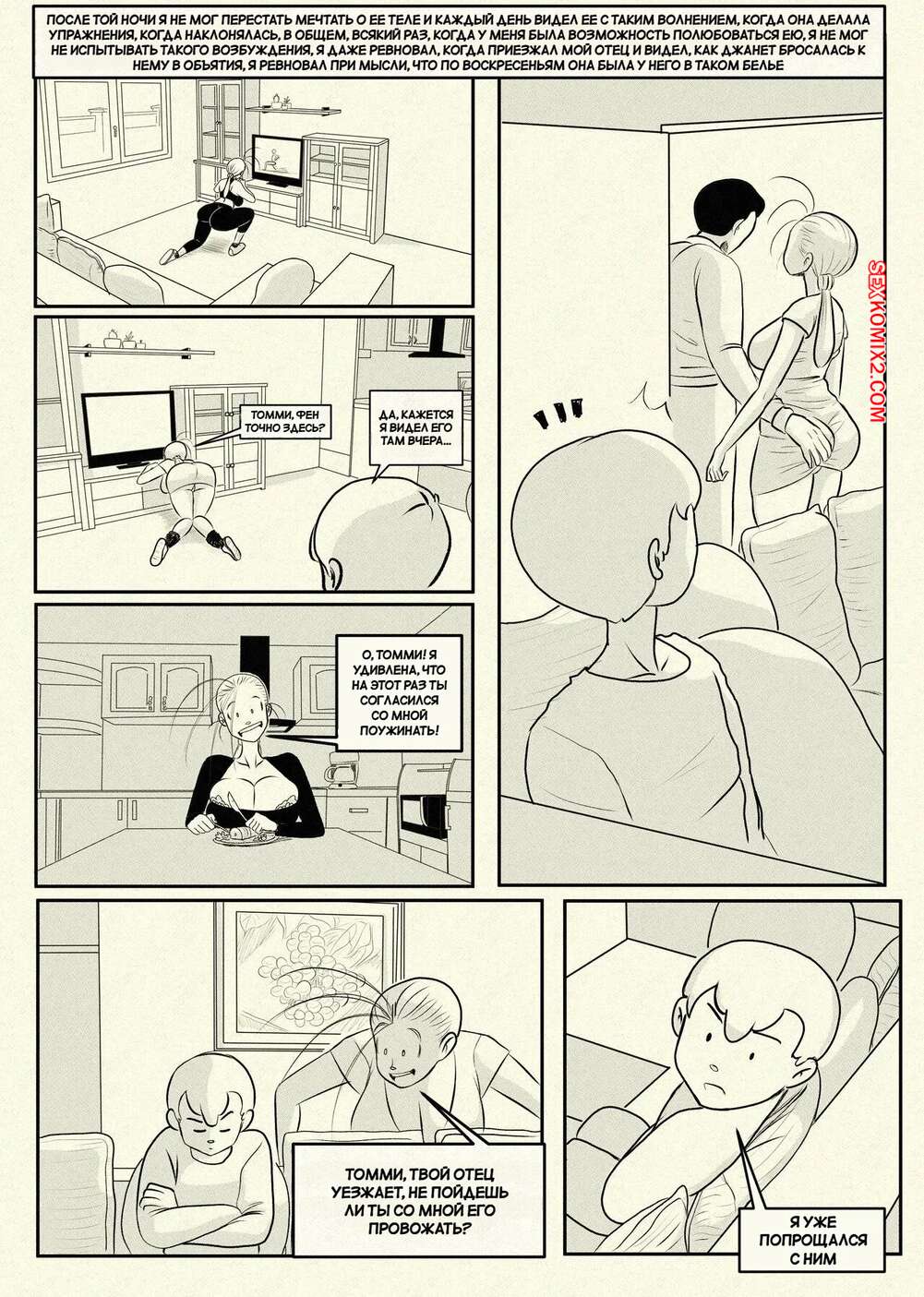 Порно комикс Ну очень наивная мама. Часть 1. Una Madre Muy Ingenua. Pinktoon. Томми без ума от шикарного тела своей горячей мачехи. Он стал дожидаться, когда она ляжет спать, посел чего приходит к ней в комнату, чтобы насладиться ее огромными сиськами и сочной задницей.