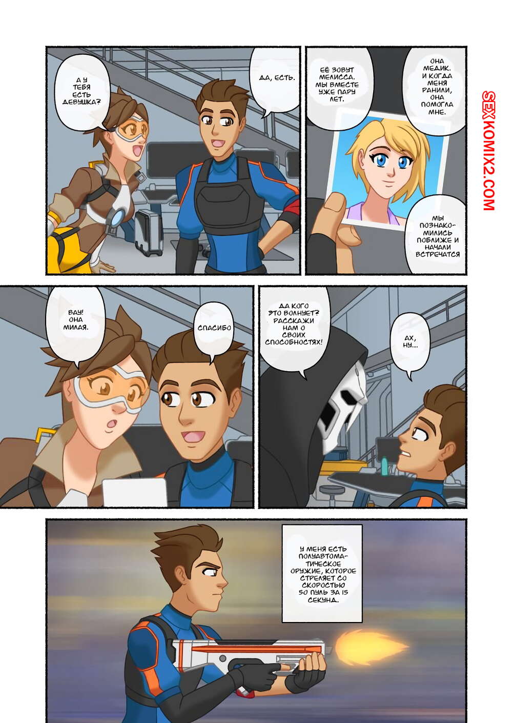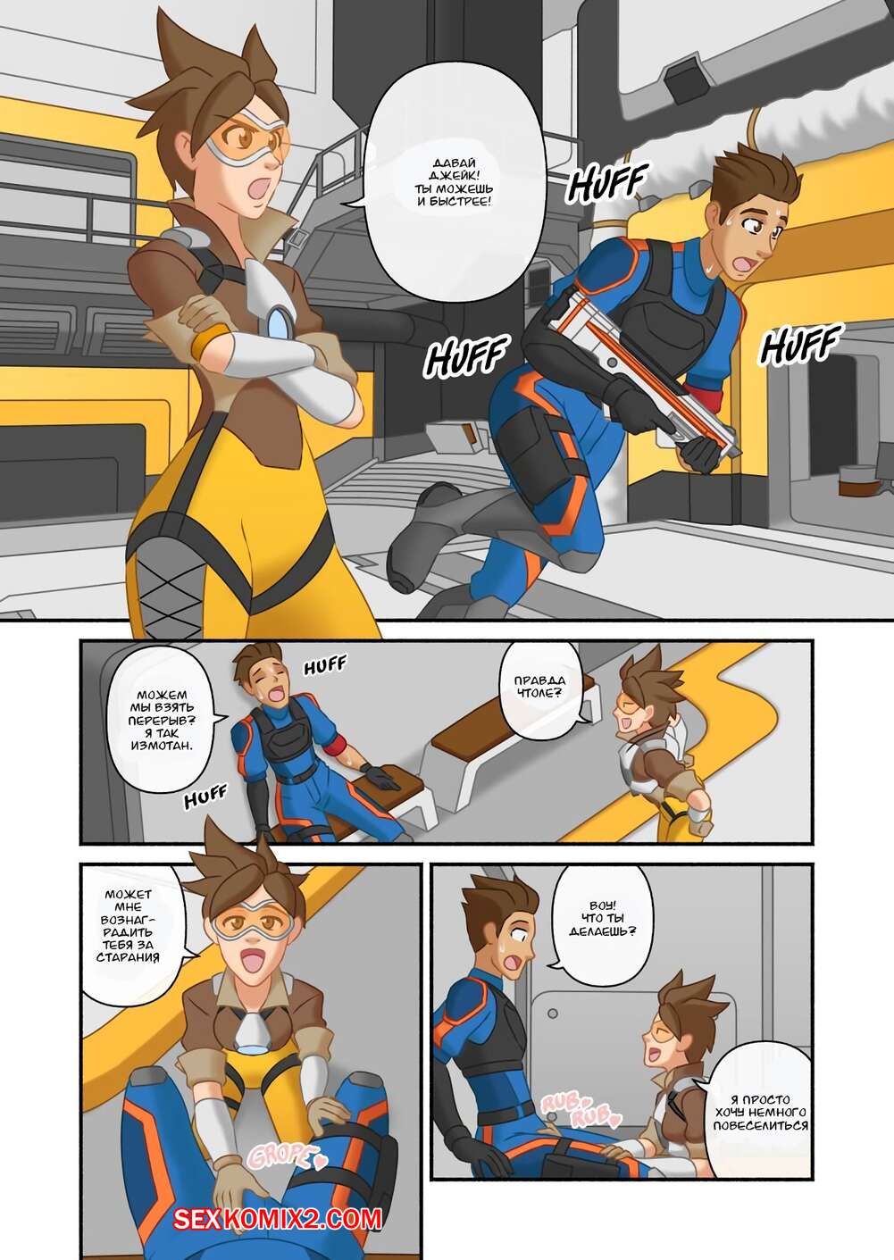 Порно комикс Overwatch. Часть 1. Тренировочный день. На службу поступил новобранец и его напарница решила устроить парню день подготовки. После того как задание было выполнено пришло время отдохнуть.