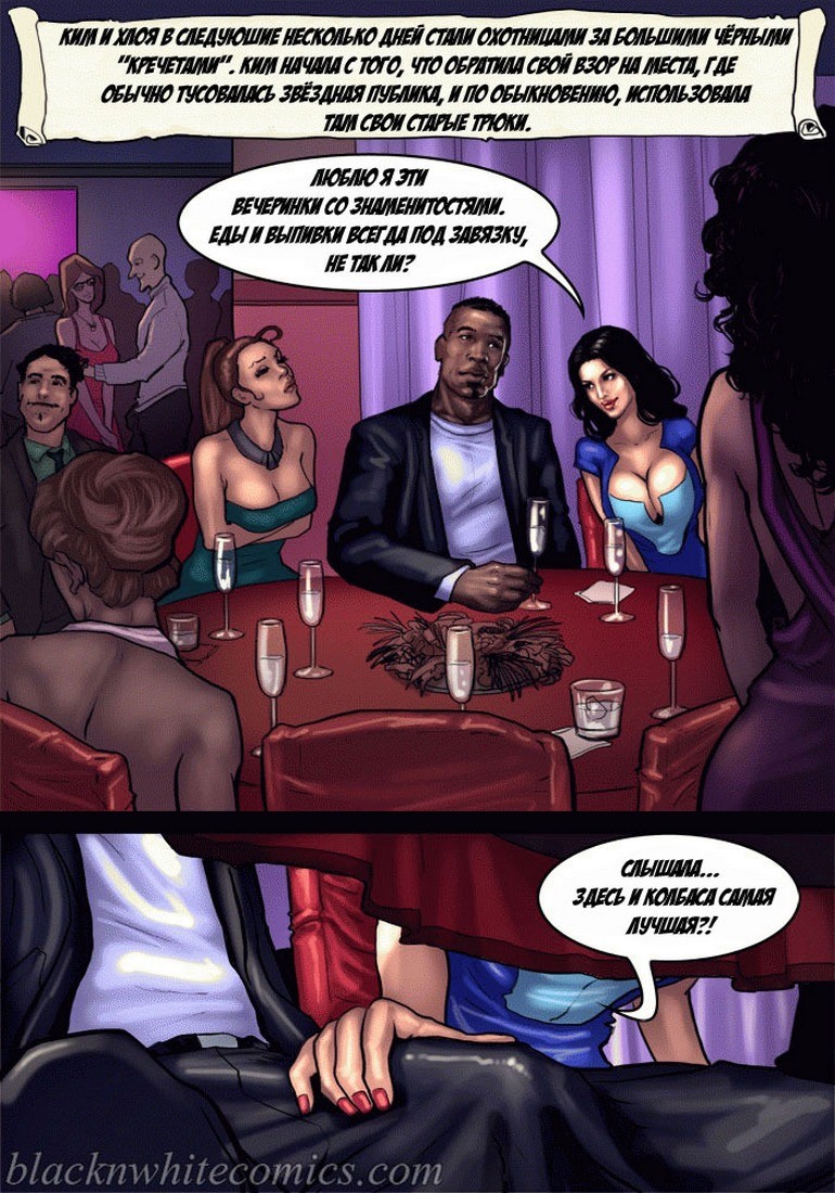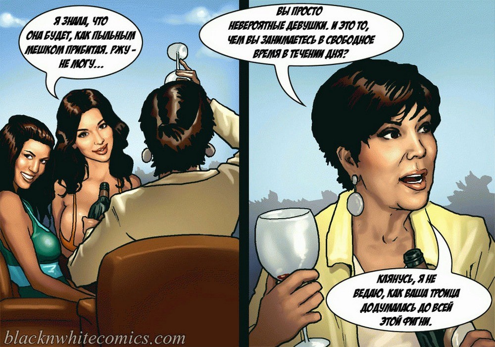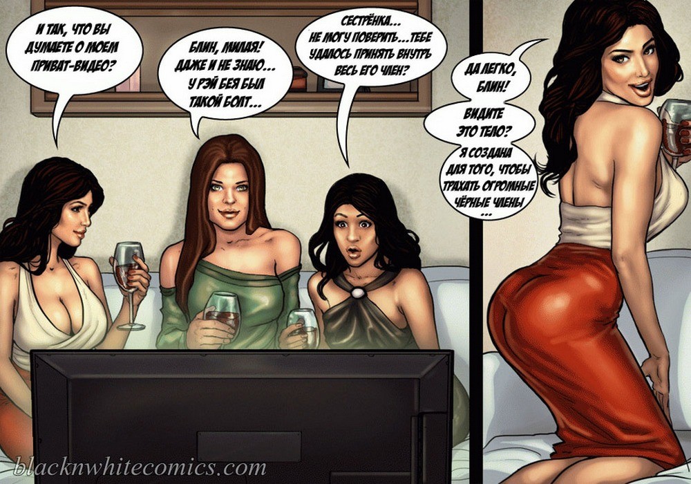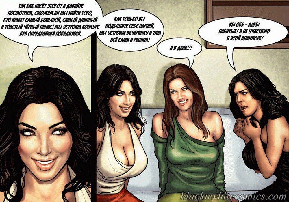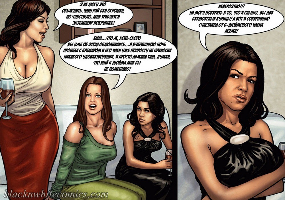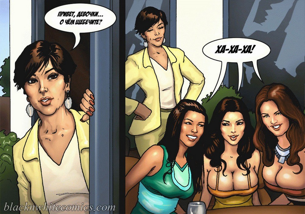 Порно комикс «Так держать семейка Карданшьян. Часть 1: Пари». В начале комикса мы видим как горячая брюнетка хвастается своим развратным сестрам, домашним порно видео, которое она сняла со своим чернокожим парнем. На нём она заглатывает его огромный член глубоко себе в глотку, занимается анальным сексом и проглатывает всю сперму которую парень ей даёт. Сёстры в шоке от увиденного, они не могут поверить, что такой гигант поместился в её стройном теле. Но порно звезда заявляет, что на этом она не остановится, и ей нужен член побольше или даже несколько. Смотрите сексуальные похождения ненасытной сестрички!