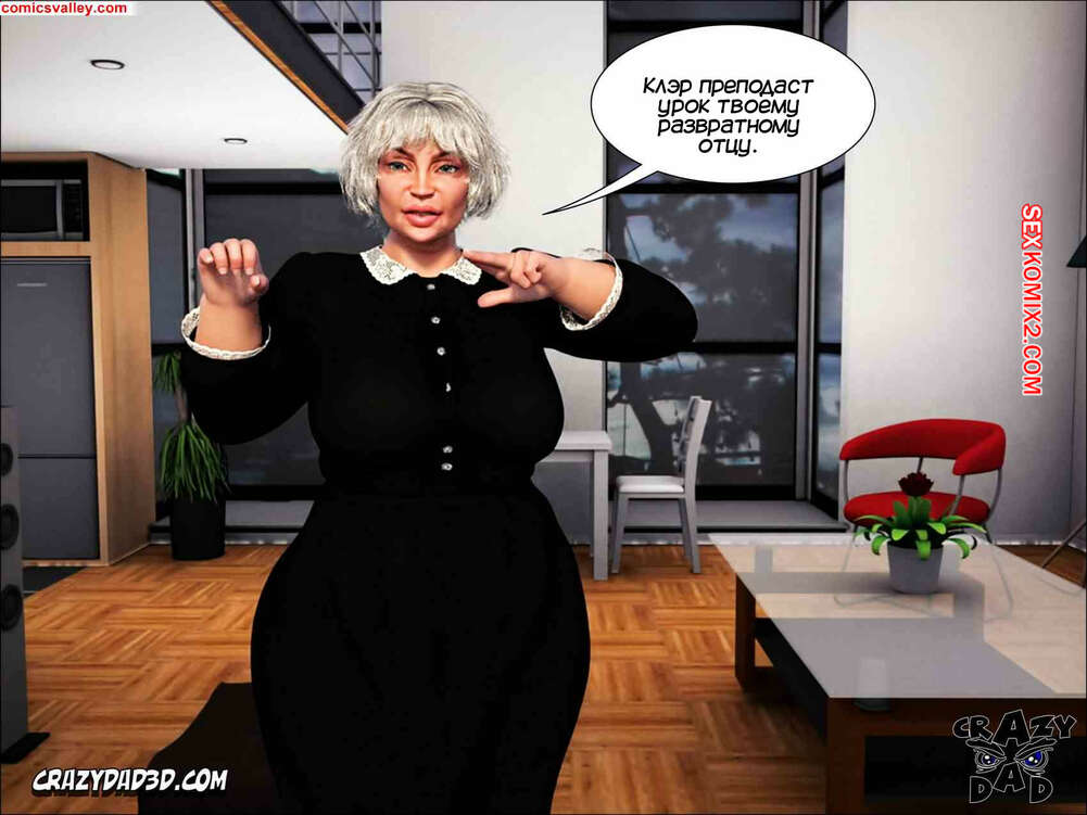 Порно комикс Безумное желание папочки. Часть 4. Daddy Crazy Desire. Crazy Dad 3D Клэр осталась дома наедине со своим отцом, чтобы серьезно с ним поговорить о случившемся с Хлоей. Но, увидев член отца, красотка не смогла устоять и стала ему отсасывать, после чего позволила себя трахнуть.