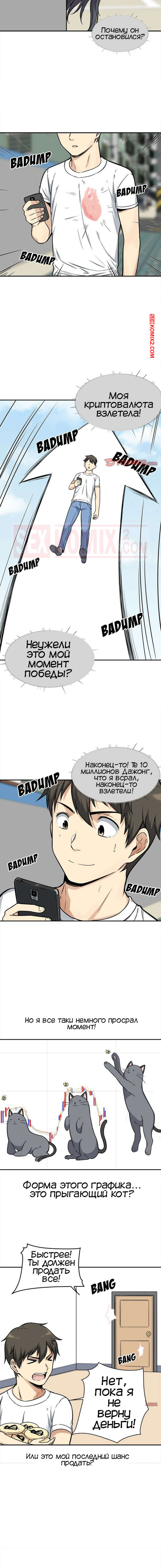 Порно комикс Извини, это моя комната. Часть 32. The Ark Is Me. Парень увидел, что курс на криптовалюту которую он купил сильно вырос и теперь у него вопрос продавать или подождать когда цена станет больше.