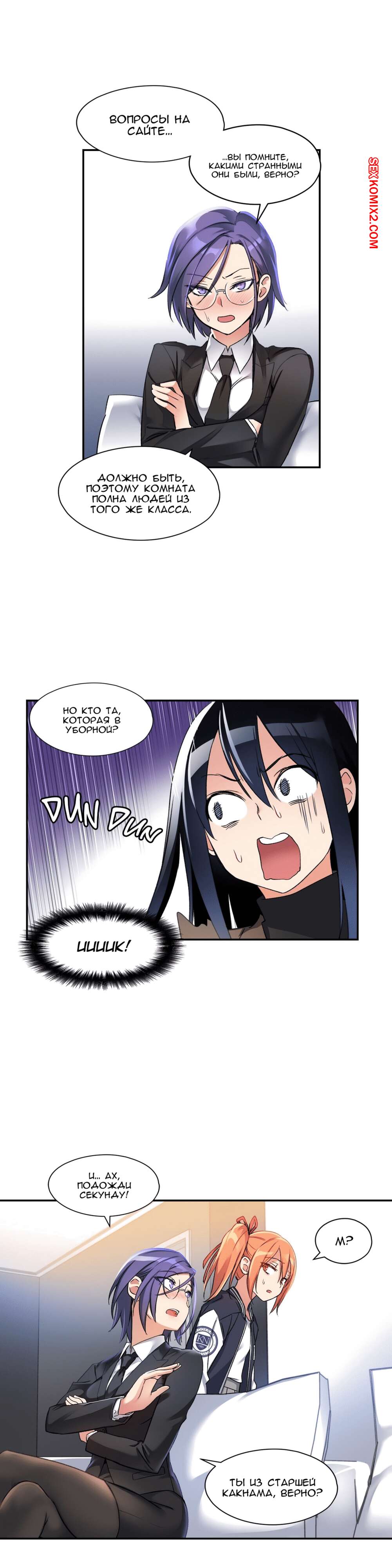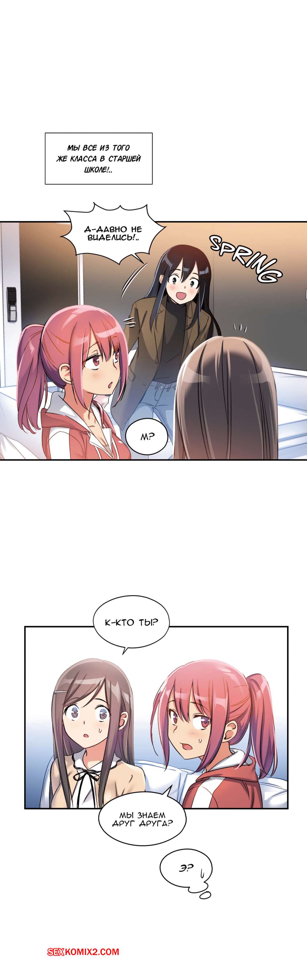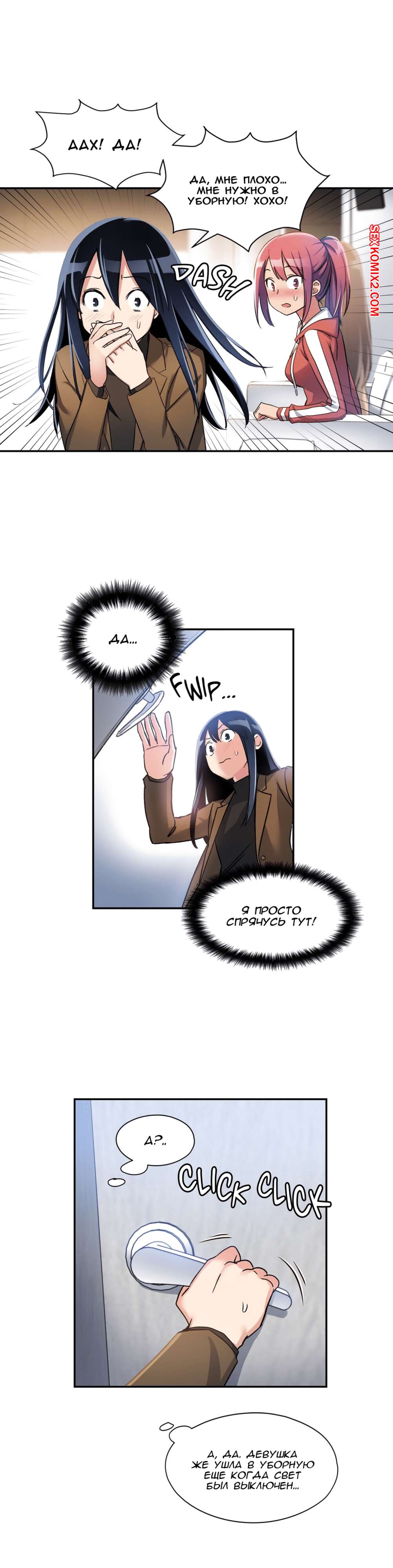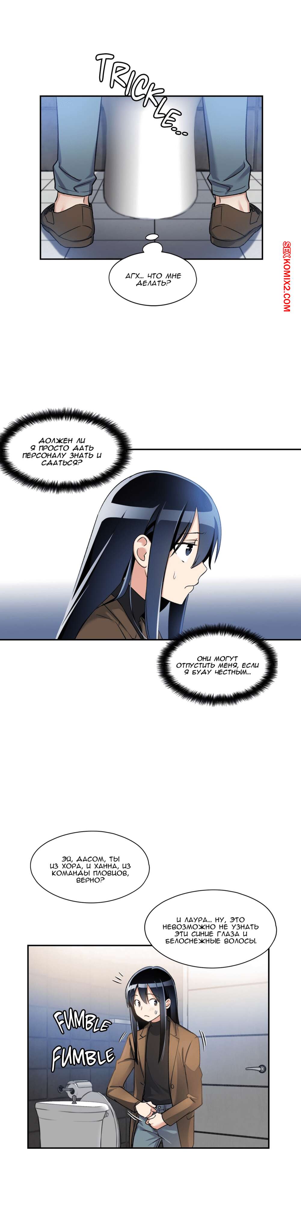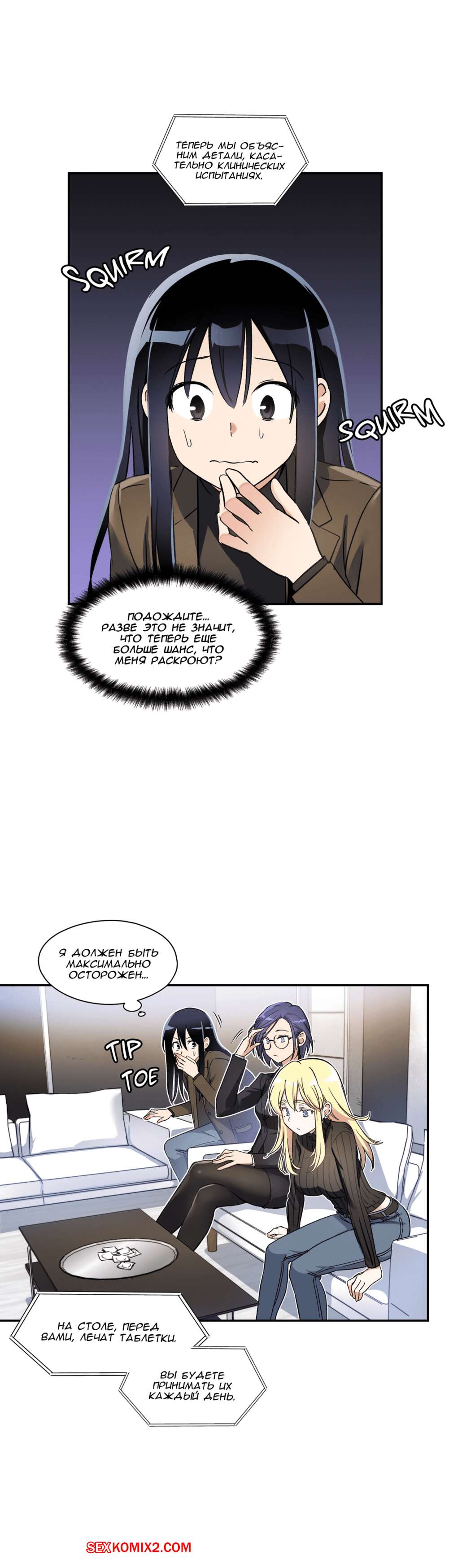 Порно комикс Под наблюдением моя первая любовь и я. Части 0 и 1 и 2 Парнишка решил нарядиться в девушку, чтобы пойти на подработку, ведь там нужны только дамы. Там собрали несколько девушек и попросил всех принять таблетку, которая вызывала у девушек огромное возбуждение, но наш герой нашел способ ее не принимать. Одна девушка спалила, что наш герой на самом деле парень, но так как ее пизда очень чесалась, она решила позвать парня с собой в отдельную комнату и уже начала раздеваться.