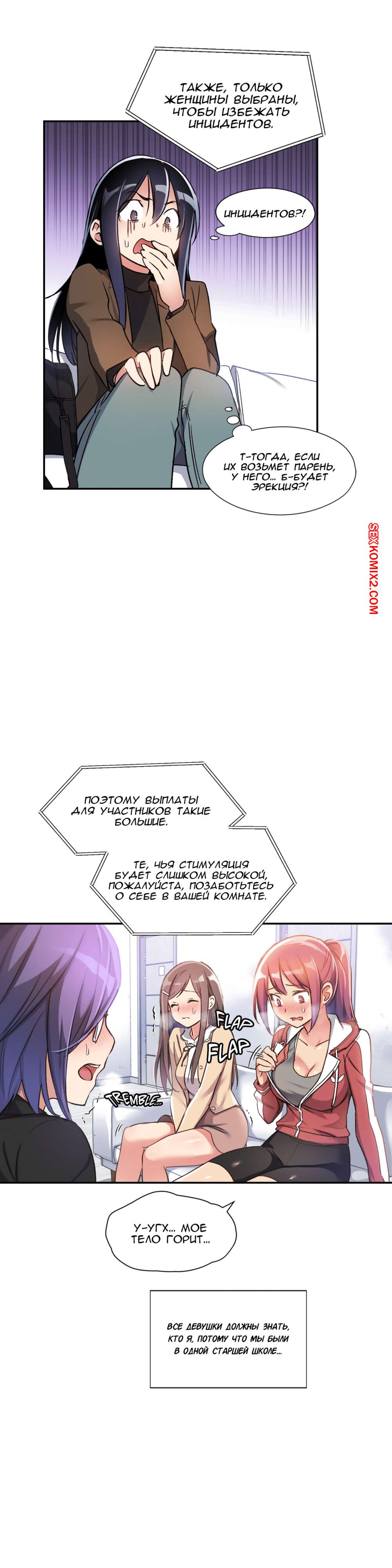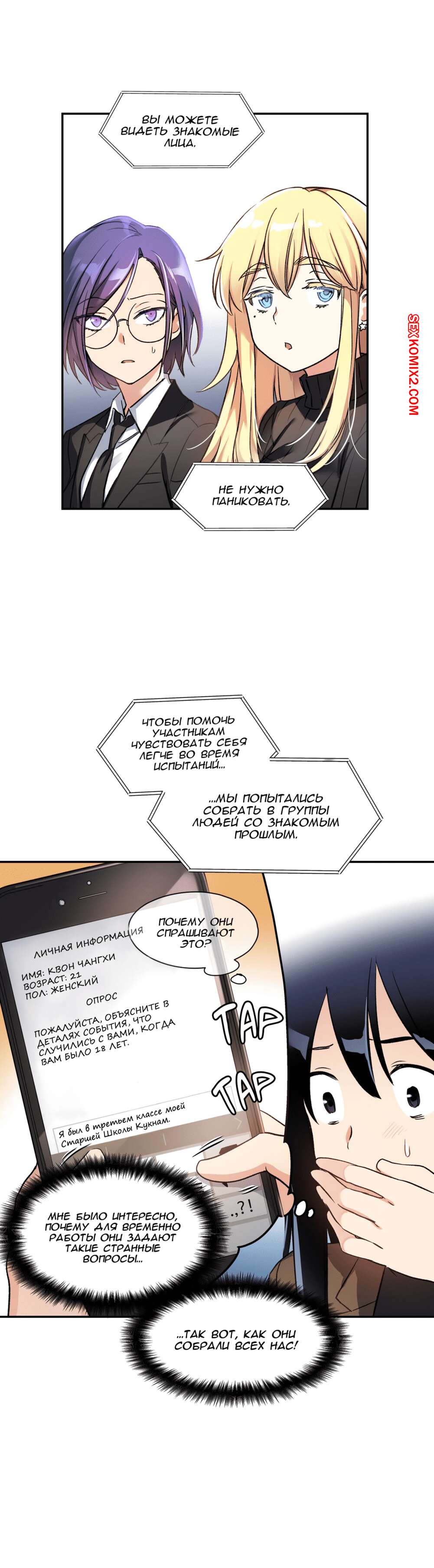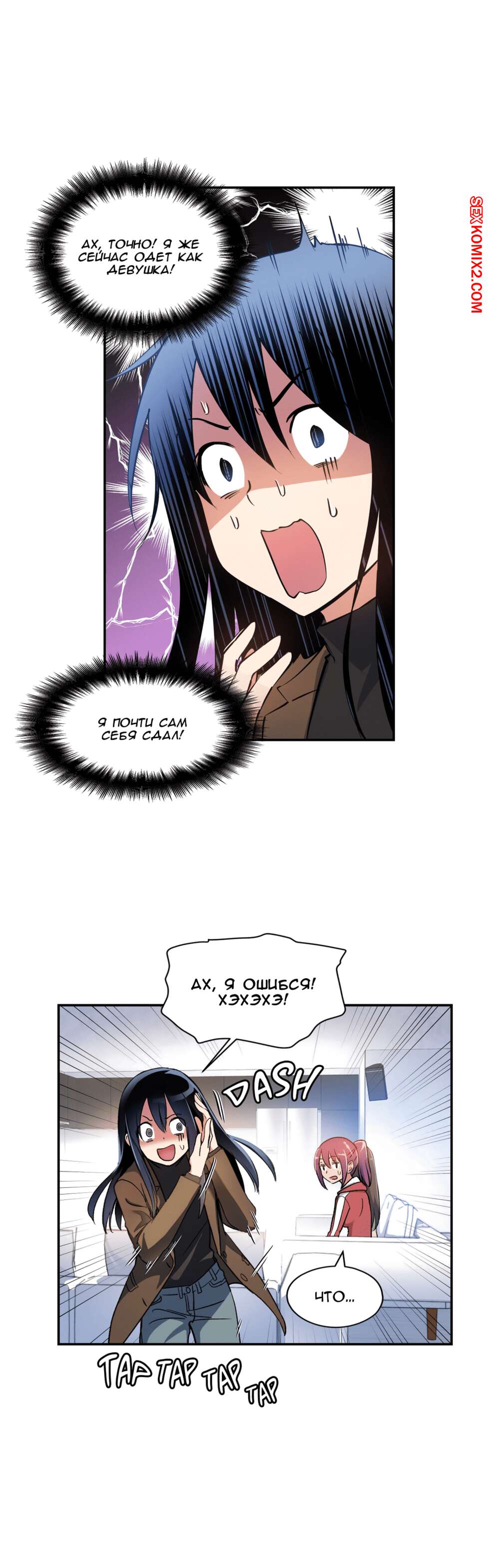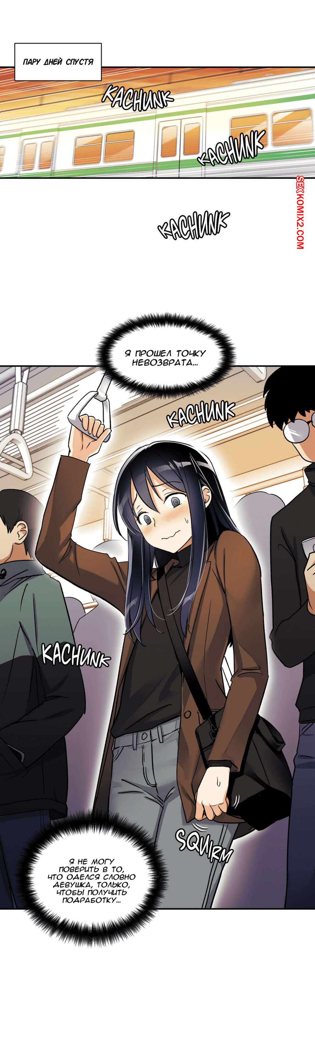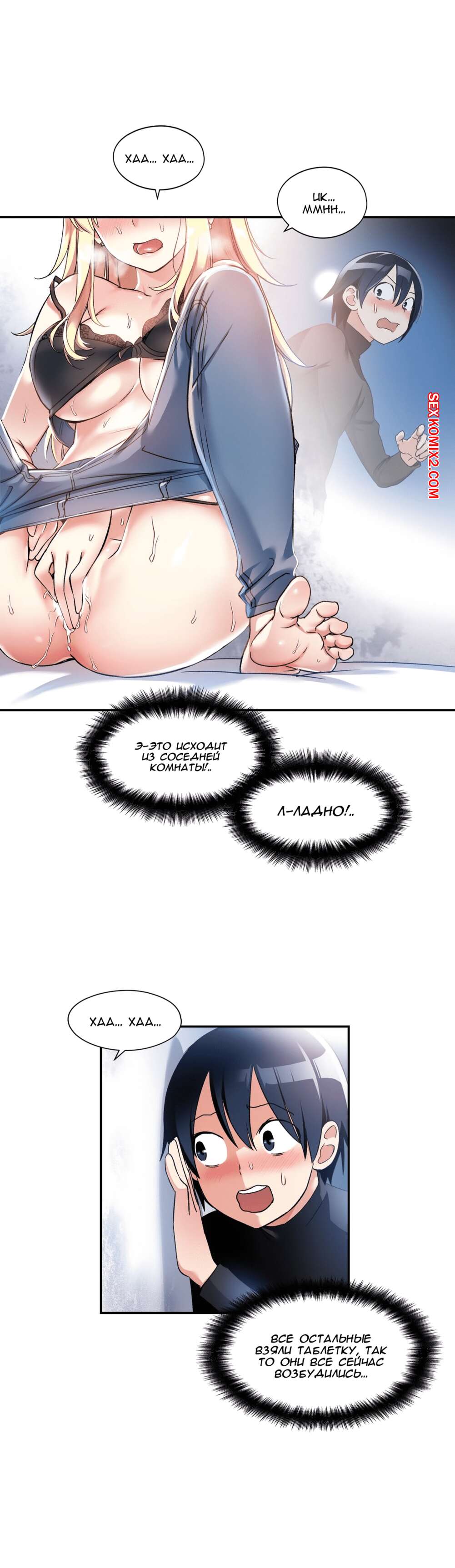 Порно комикс Под наблюдением моя первая любовь и я. Части 0 и 1 и 2 Парнишка решил нарядиться в девушку, чтобы пойти на подработку, ведь там нужны только дамы. Там собрали несколько девушек и попросил всех принять таблетку, которая вызывала у девушек огромное возбуждение, но наш герой нашел способ ее не принимать. Одна девушка спалила, что наш герой на самом деле парень, но так как ее пизда очень чесалась, она решила позвать парня с собой в отдельную комнату и уже начала раздеваться.