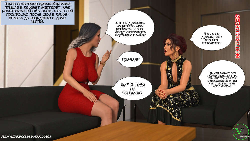 Порно комикс Все вместе. Часть 19. Teamwork. MandoLogica Каролина позвонила Маргарет и назначила с ней встречу, чтобы обсудить отношения с Мартином. Тем временем Эмма и Мия отправились в спа, чтобы подготовиться к вечернему шоу.