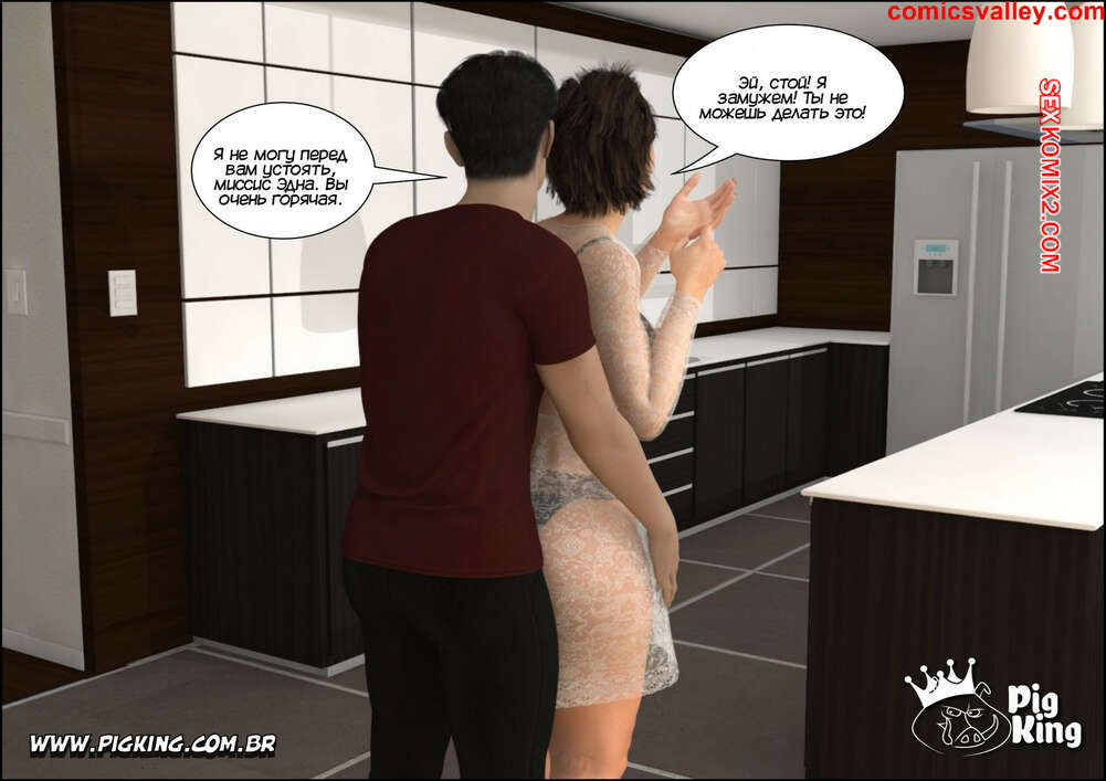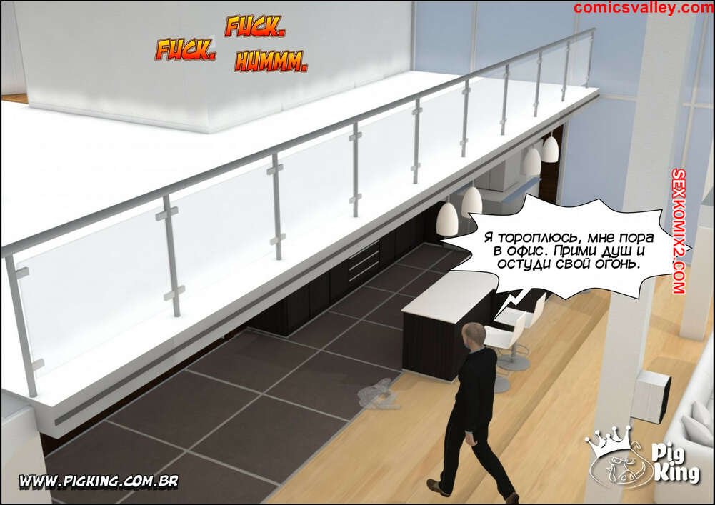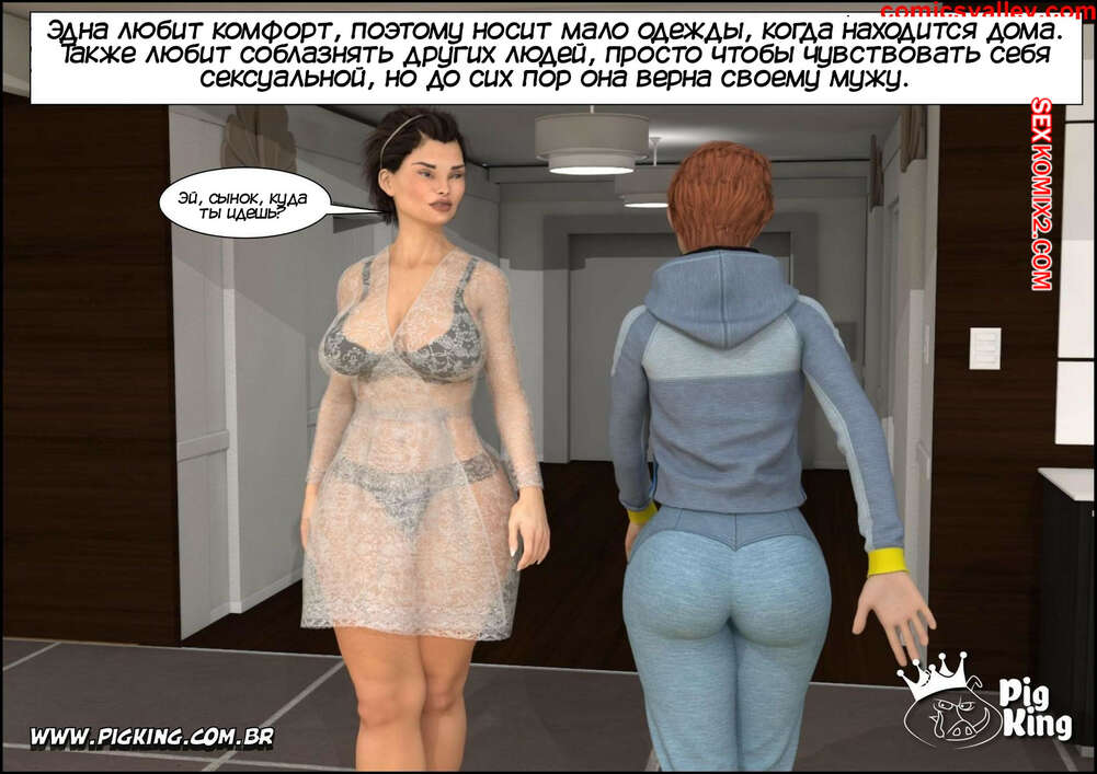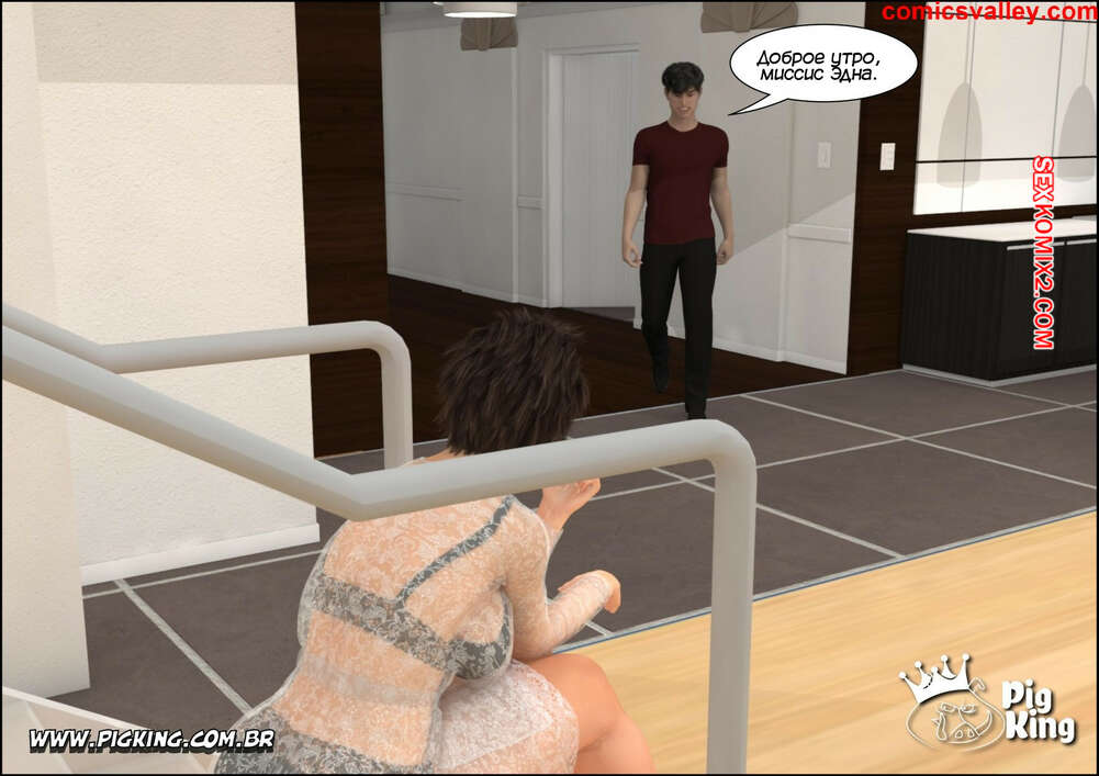 Порно комикс Отличный день. A Great Day. PigKing Горячая милфа осталась дома наедине с мужем и хотела потрахаться, но мужик спешил на работу. К счастью красотки, к ним домой пришел друг ее сына, который хорошенько выебал милфу и сделал ее своей шлюхой.