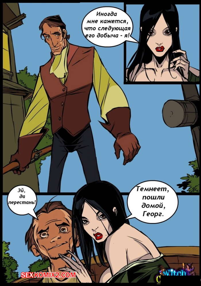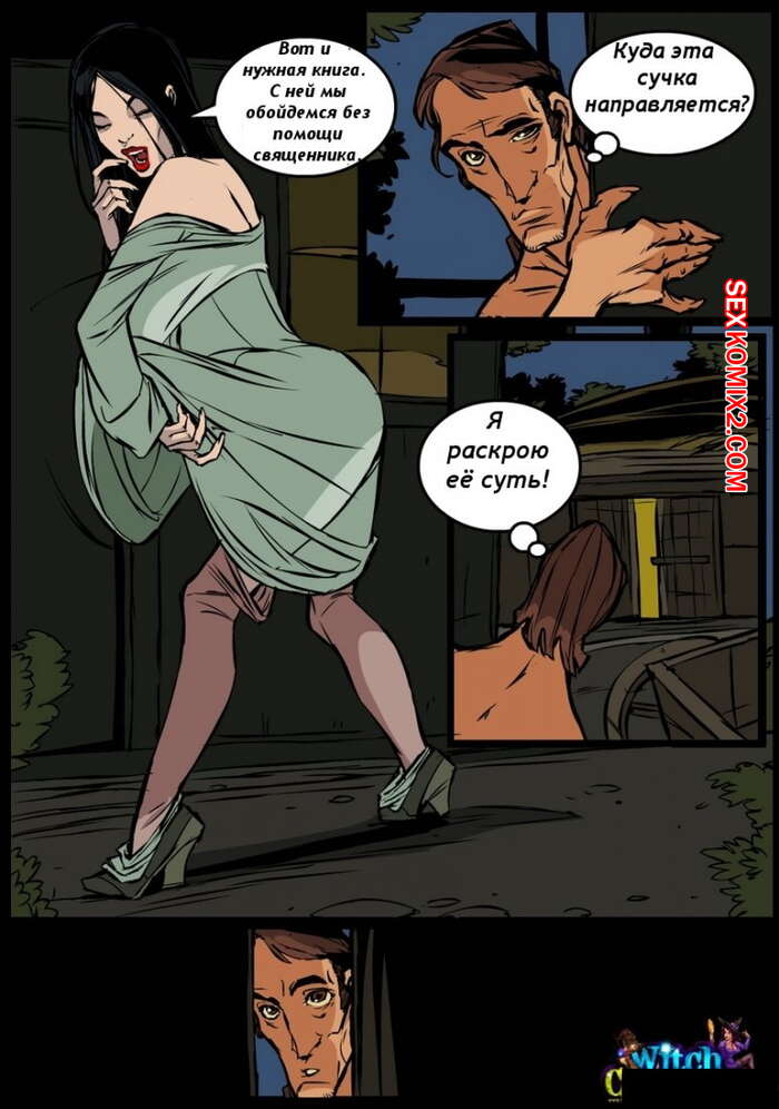 Порно комикс Ведьма. Witch. Часть 4 Ведьмочка со своим мужем приехала к его родителям. Ночью она решилась отлучиться по своим магическим делам. Там ее застал брат мужа и он невероятно возбудился голой красоткой. Подкравшись сзади он вставил в нее свой хуй и выебал.