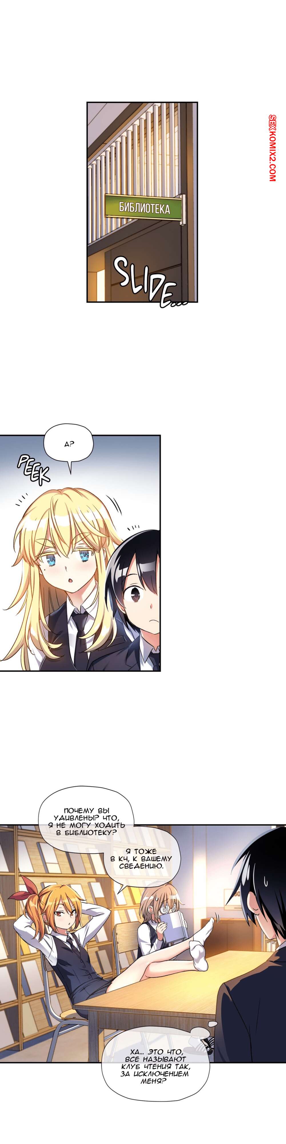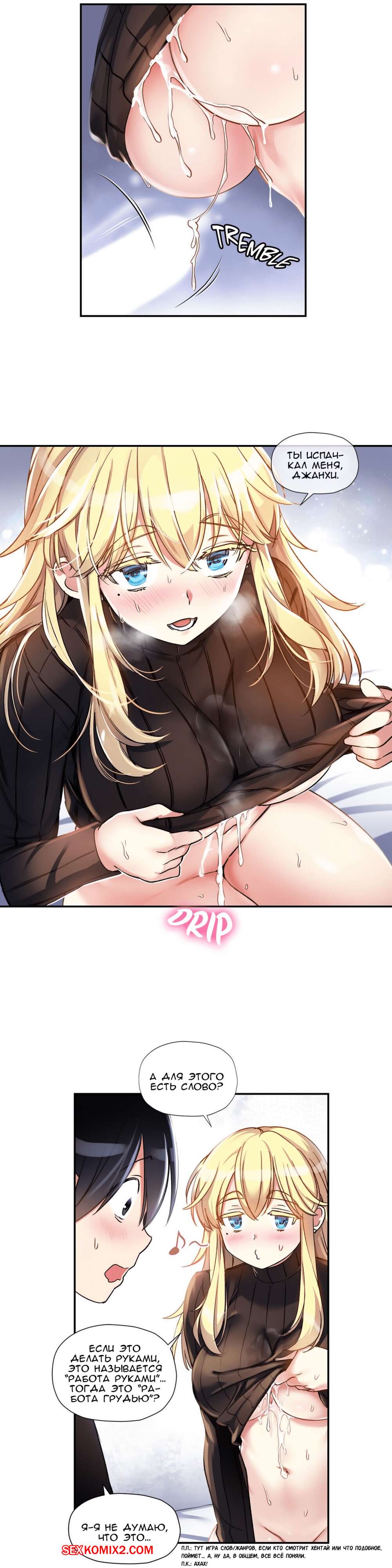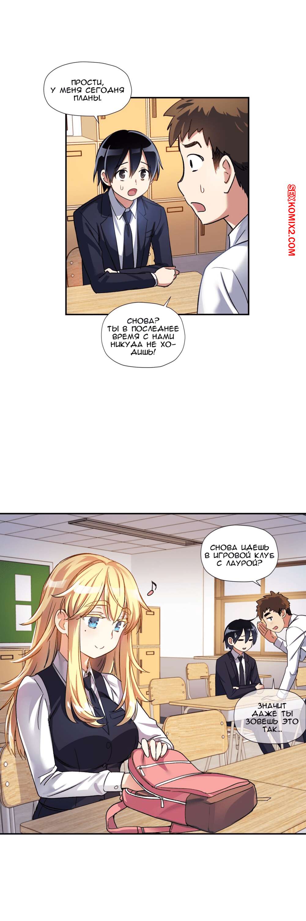 Порно комикс Под наблюдением моя первая любовь и я. Части 9 и 10 и 11 После школы парнишка остался с классной красивой блондинкой, чтобы дополнительно позаниматься. Но ее интересовали точно не занятия, а ее дружок. Она набросилась на него и стала раздеваться. Она с огромным удовольствием отсосала его хуй, а потом оседлала его, чтобы выебать.