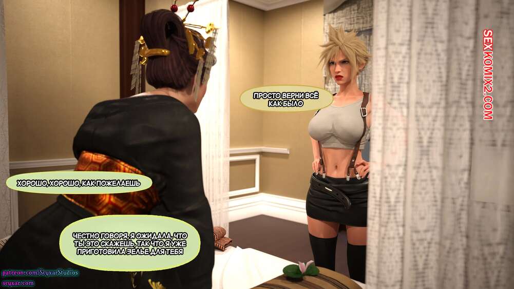 Порно комикс Final Fantasy. Тифа неторарэ. Часть 10. Tifa NTR. Scyxar Studios Горячая брюнетка надела сексуальный наряд, желая порадовать своего дружка. Девушка встала раком и раздвинула свои дырочки, после чего позволила парню выебать себя как следует.