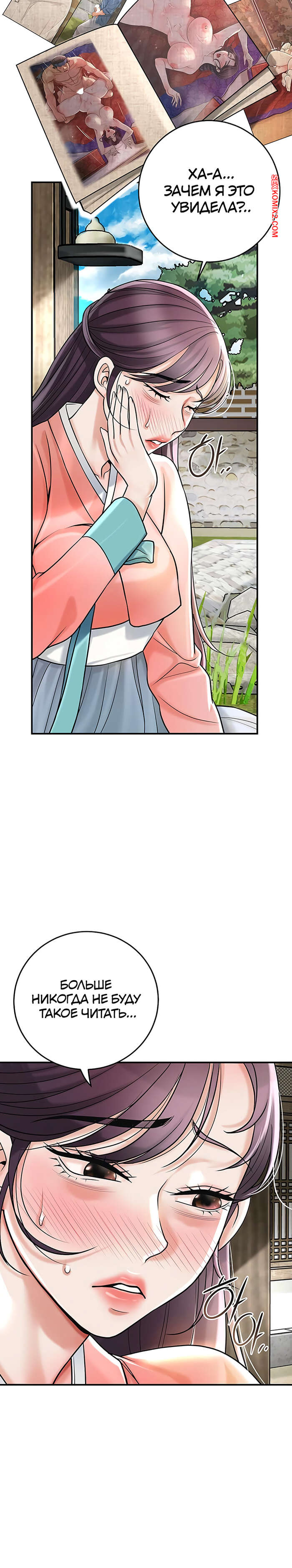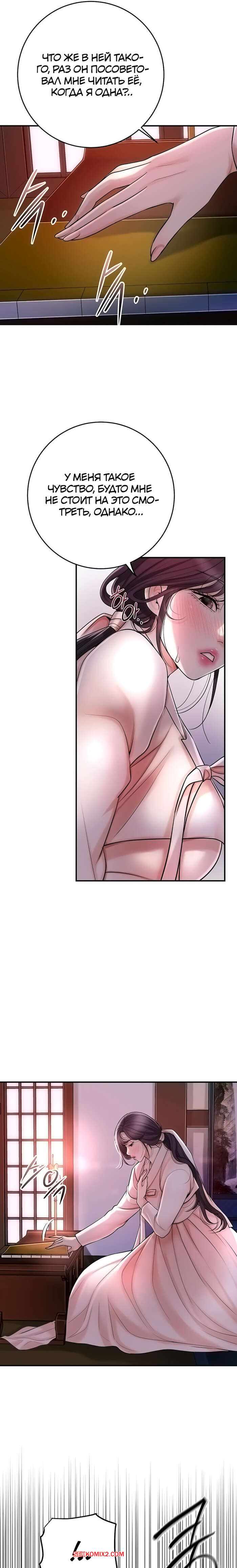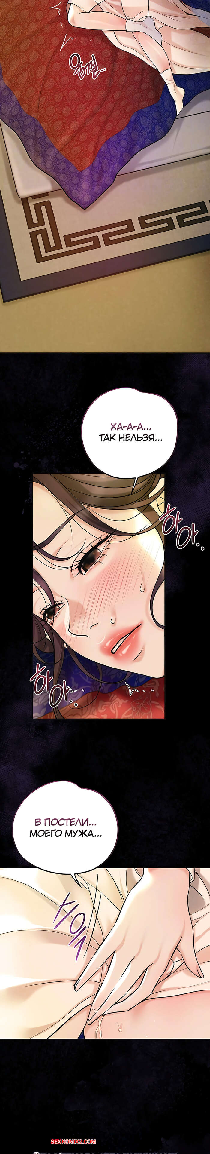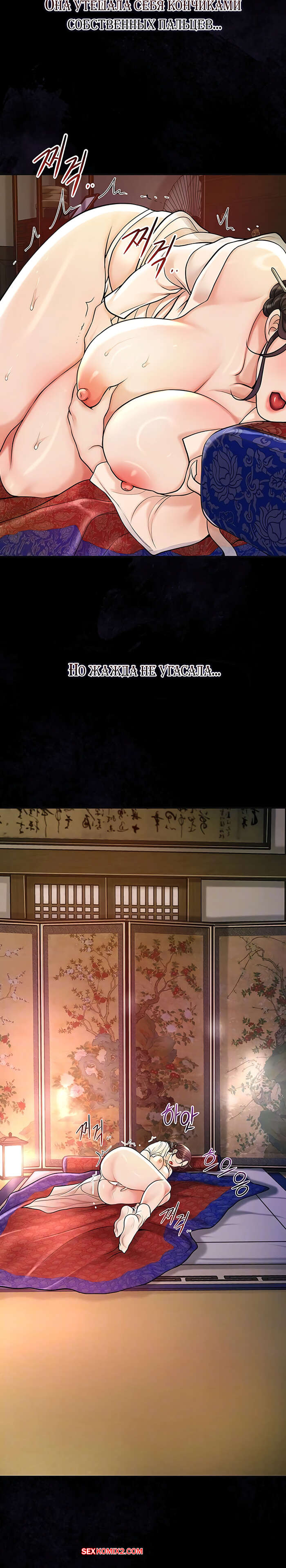 Порно комикс Бордель. Часть 44 и 45 и 46. chwihwajeom Красотка вспомнила свой секс с парнем и очень возбудилась. Она легла на кровать и сняла трусики, после чего стала ласкать пальчиками пизденку, получая один оргазм за другим.