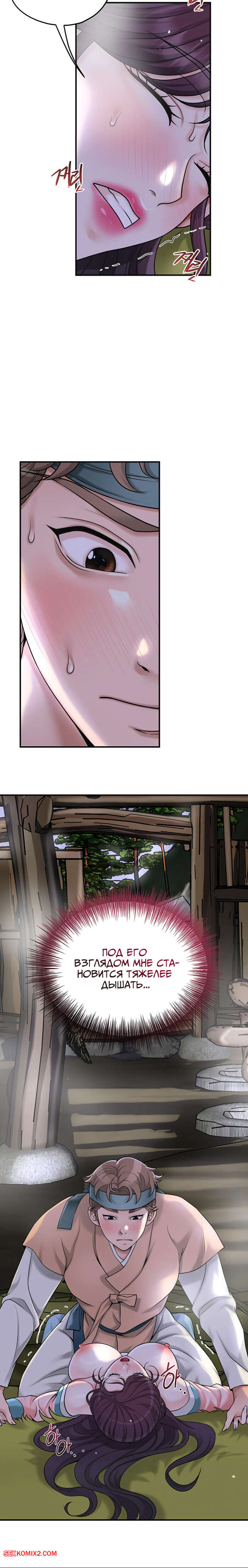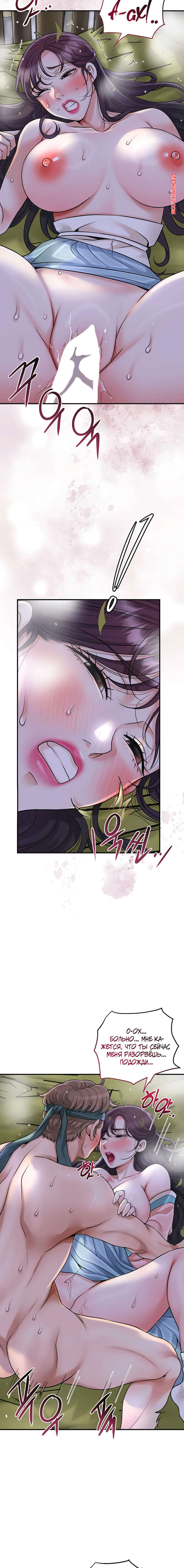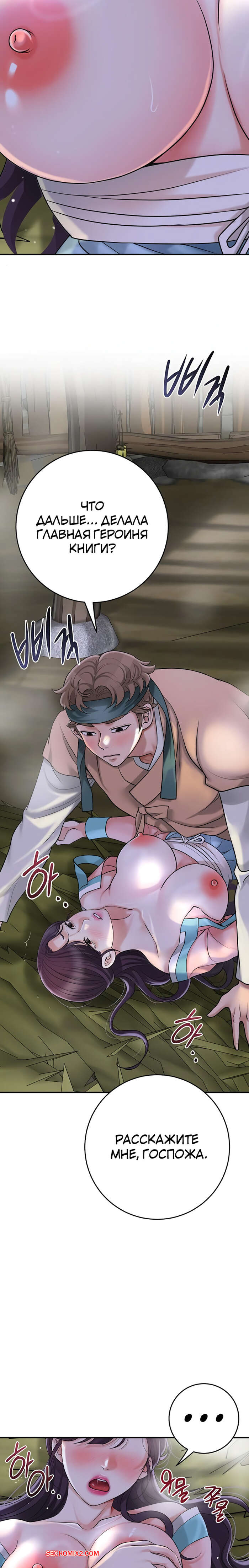 Порно комикс Бордель. Часть 47 и 48. chwihwajeom Юный парень оказывается наедине с сексуальной брюнеткой и не может сдерживаться. Он укладывает красотку на землю и ласкает ее большие сиськи, после чего резко вставляет в нее свой член.