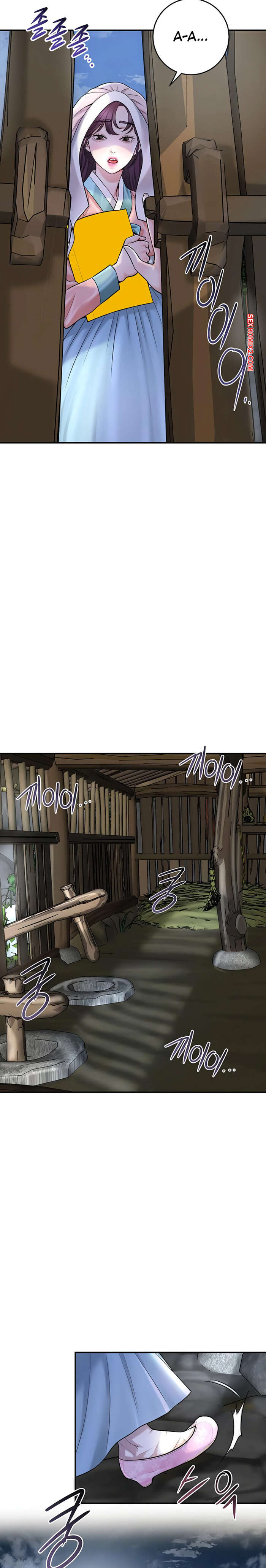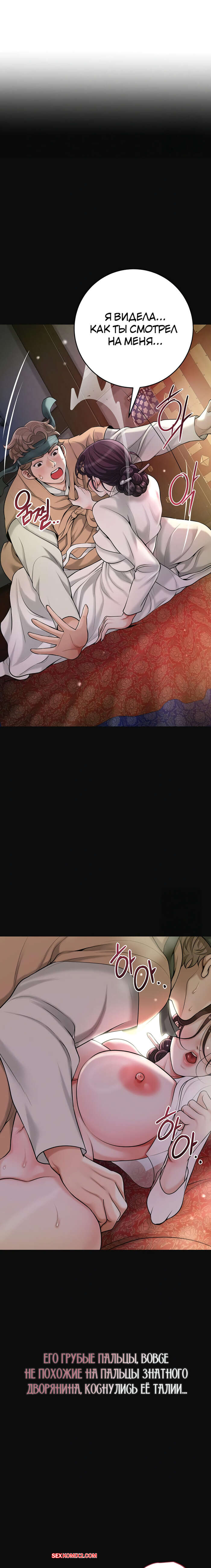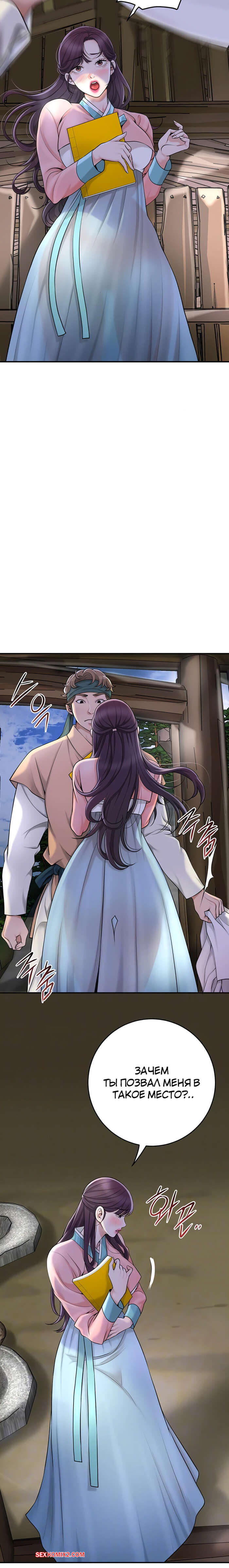 Порно комикс Бордель. Часть 47 и 48. chwihwajeom Юный парень оказывается наедине с сексуальной брюнеткой и не может сдерживаться. Он укладывает красотку на землю и ласкает ее большие сиськи, после чего резко вставляет в нее свой член.