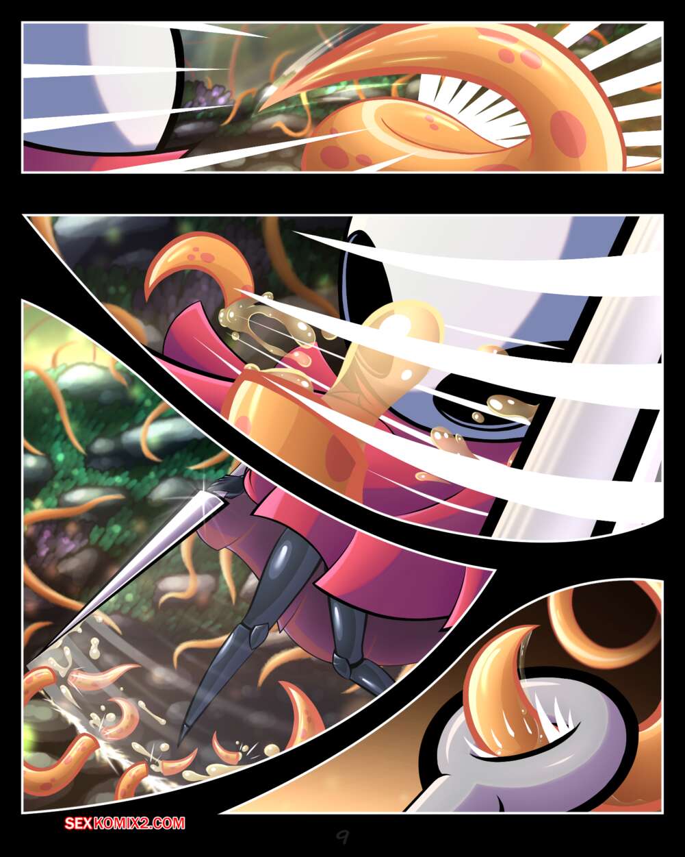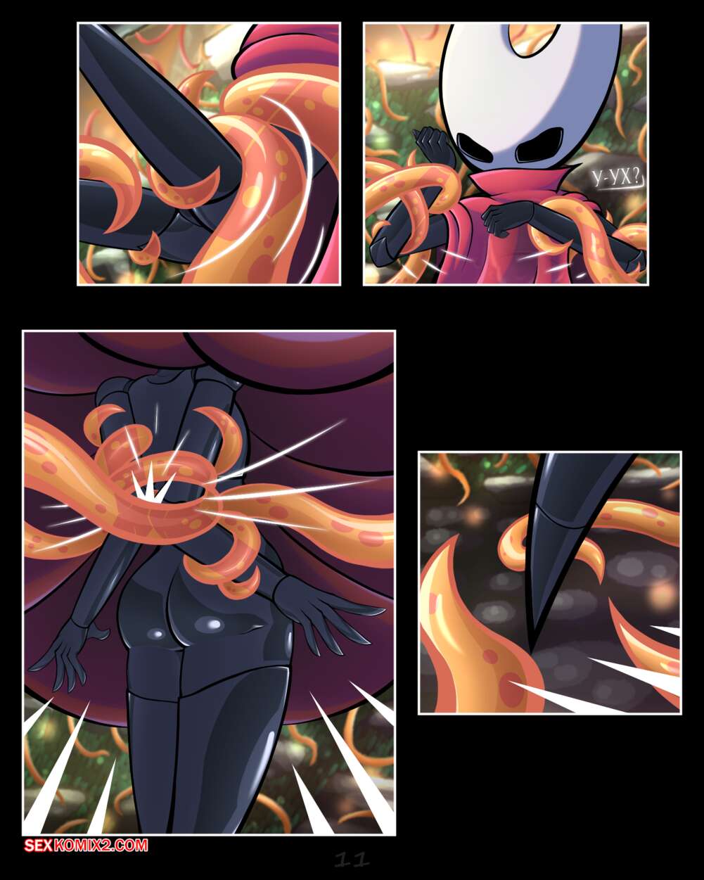 Порно комикс Hollow Knight. Хорнет в пролёте. Hornet Be Gone. Jelllifish Девушка рыцарь отправилась в лес в поисках приключений и нашла их. Красотку схватили тентакли и лишил ее возможности двигаться, после чего выебали ее во все дырочки.