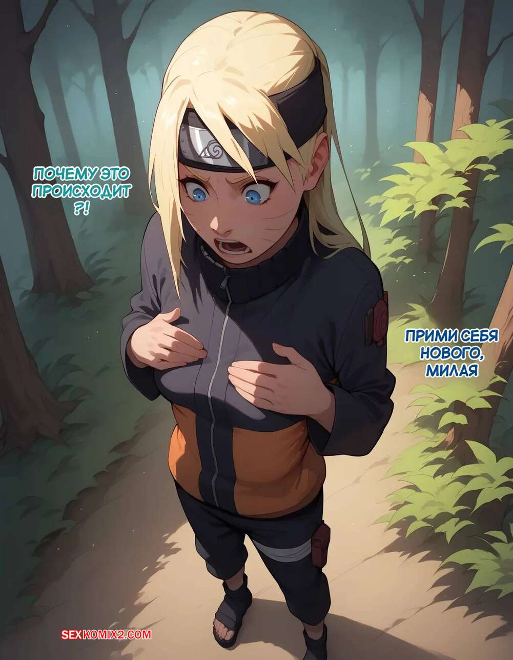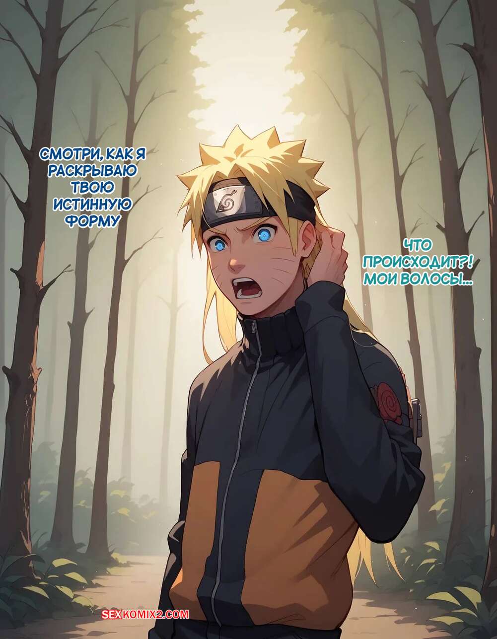 Порно комикс Наруто. Деревня Эрос. Часть 1. The Village of Eros. Sax Наруто отпраивлся в лес и встретил там ниндзя деревни Эрос. Он с помощью своих способностей превратил Наруто в сексуальную блондинку, после чего как следует трахнул девушку.