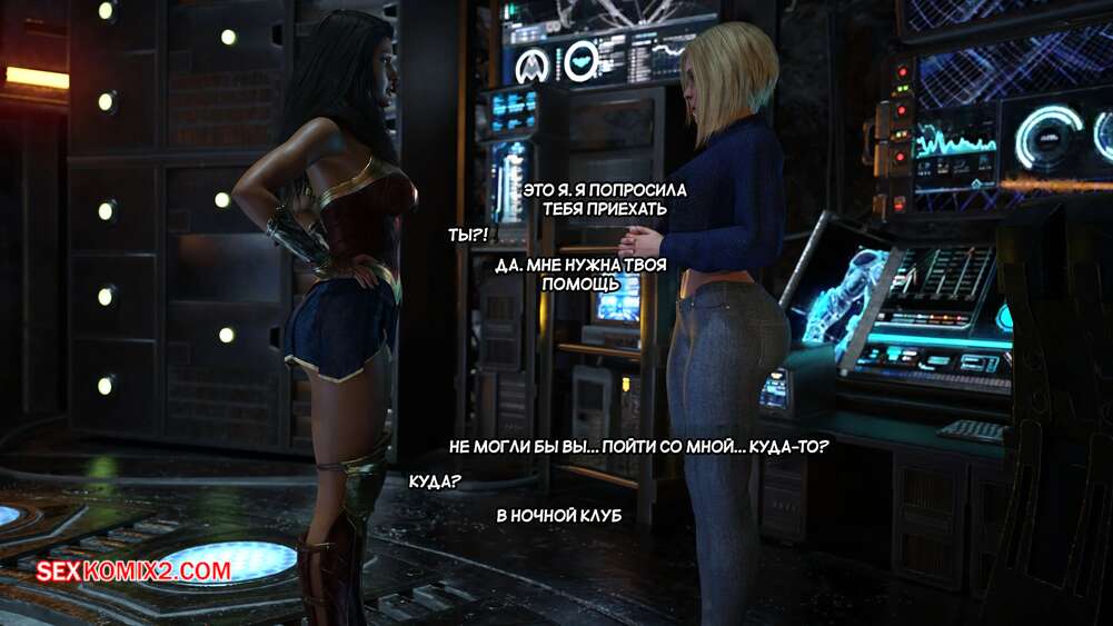 Порно комикс DC. Бэтгерл начинается. Часть 4. Batgirl Begins. Scyxar Studios Чудо Женщина и Супергерл отправились в ночной клуб, надев сексуальные платья. Там девушки стали танцевать и привлекли внимание темнокожих парней, которые стали домогаться до подруг.