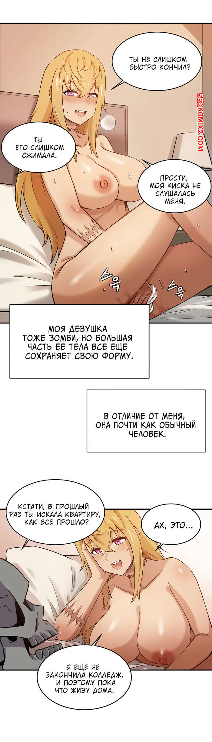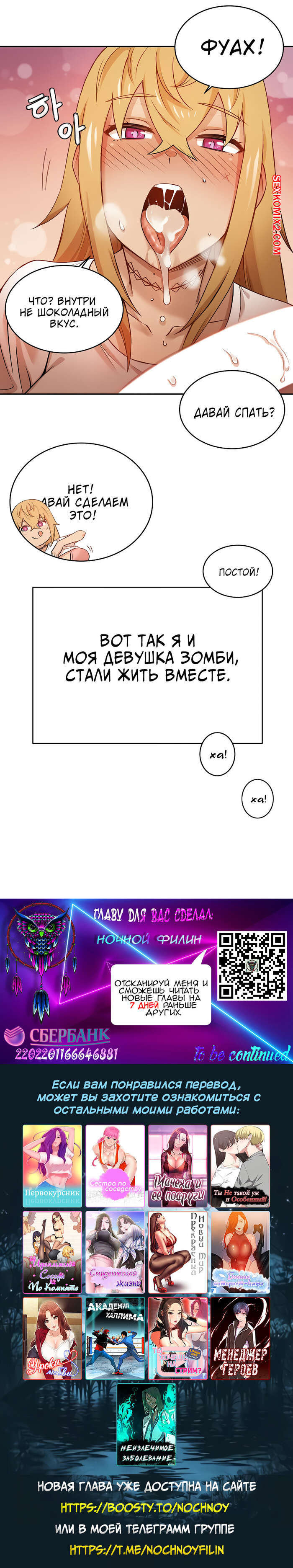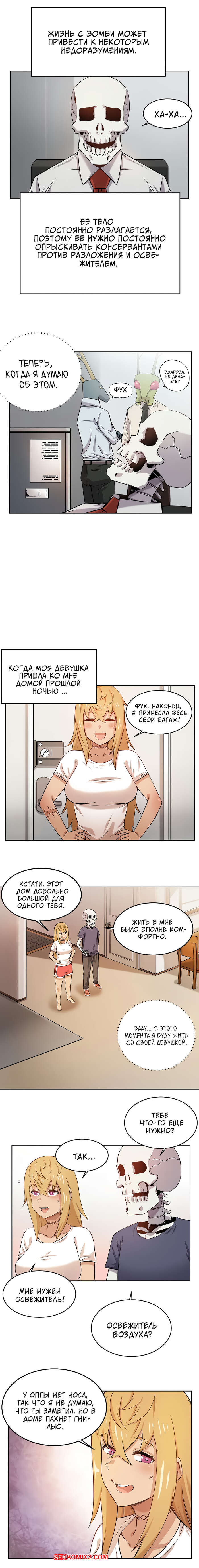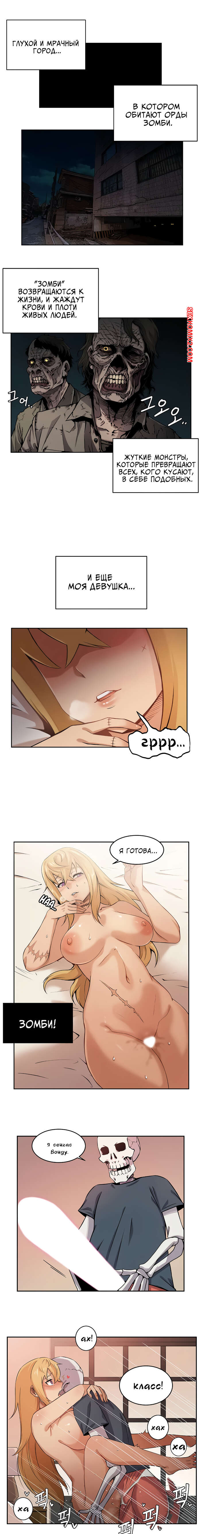 Порно комикс Моя девушка зомби. Части 1 и 2. Парнишка рассказывает о том, что в его городе произошло страшное и множество людей превратились в зомби. И к несчастью его девушка тоже стала зомби и ее охватило огромное желание ебаться каждый день по несколько раз, что парень с трудом справляется.