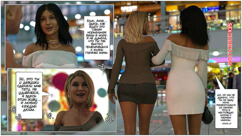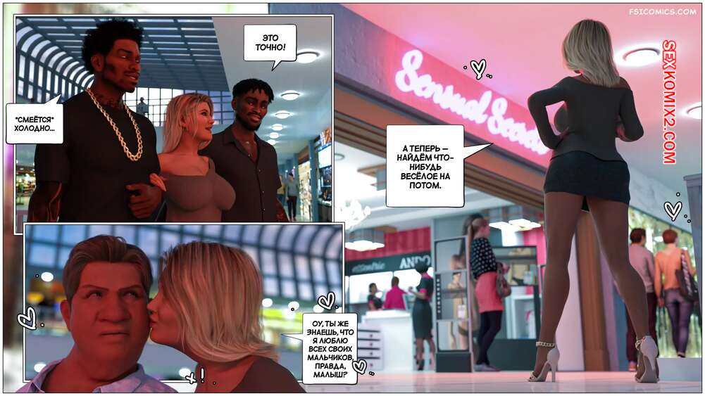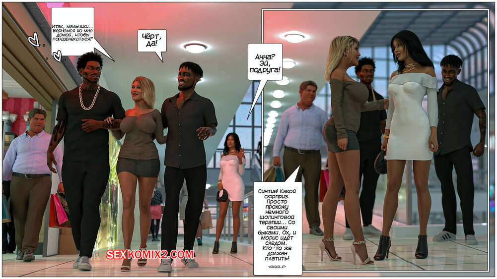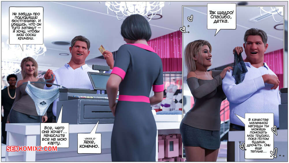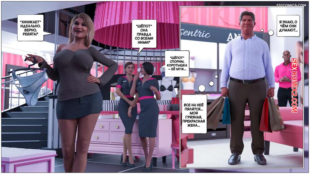 Порно комикс Черная метка. Часть 3. Black Marked. Tab109 Горячая милфа отправилась в торговый центр с двумя своими любовниками и мужем неудачником. Красотка стала выбирать себе сексуальное белье, желая порадовать черные члены.