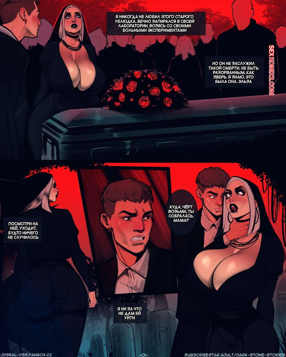 Порно комикс Хэллоуин. Halloween Special. JDSeal. У парня умер отец и сразу после свадьбы он решил пошалить со своей мамкой. Он стал лапать большие сиськи девушки, после чего она встала на колени, чтобы взять хуй в ротик.