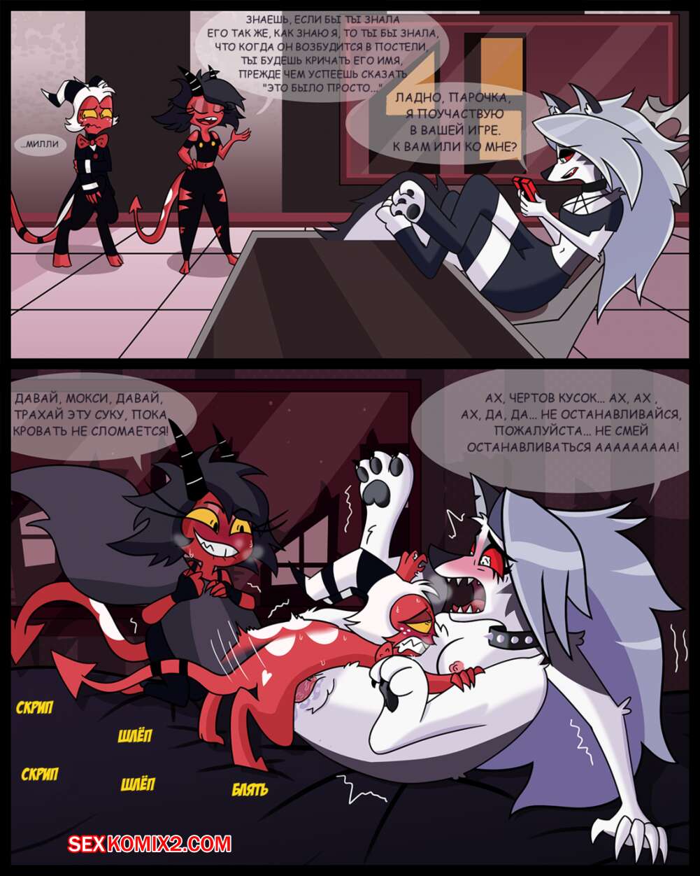Порно комикс Адский Босс. Отель Хазбин Две дьявольских девушки подошли к красотке, чтобы одна из них повеселилась с ней. Она набросилась на подругу, чтобы оттрахать ее своим красным большим хуем. Мощно ее выебав, она кончила в самую пизду красивому существу.