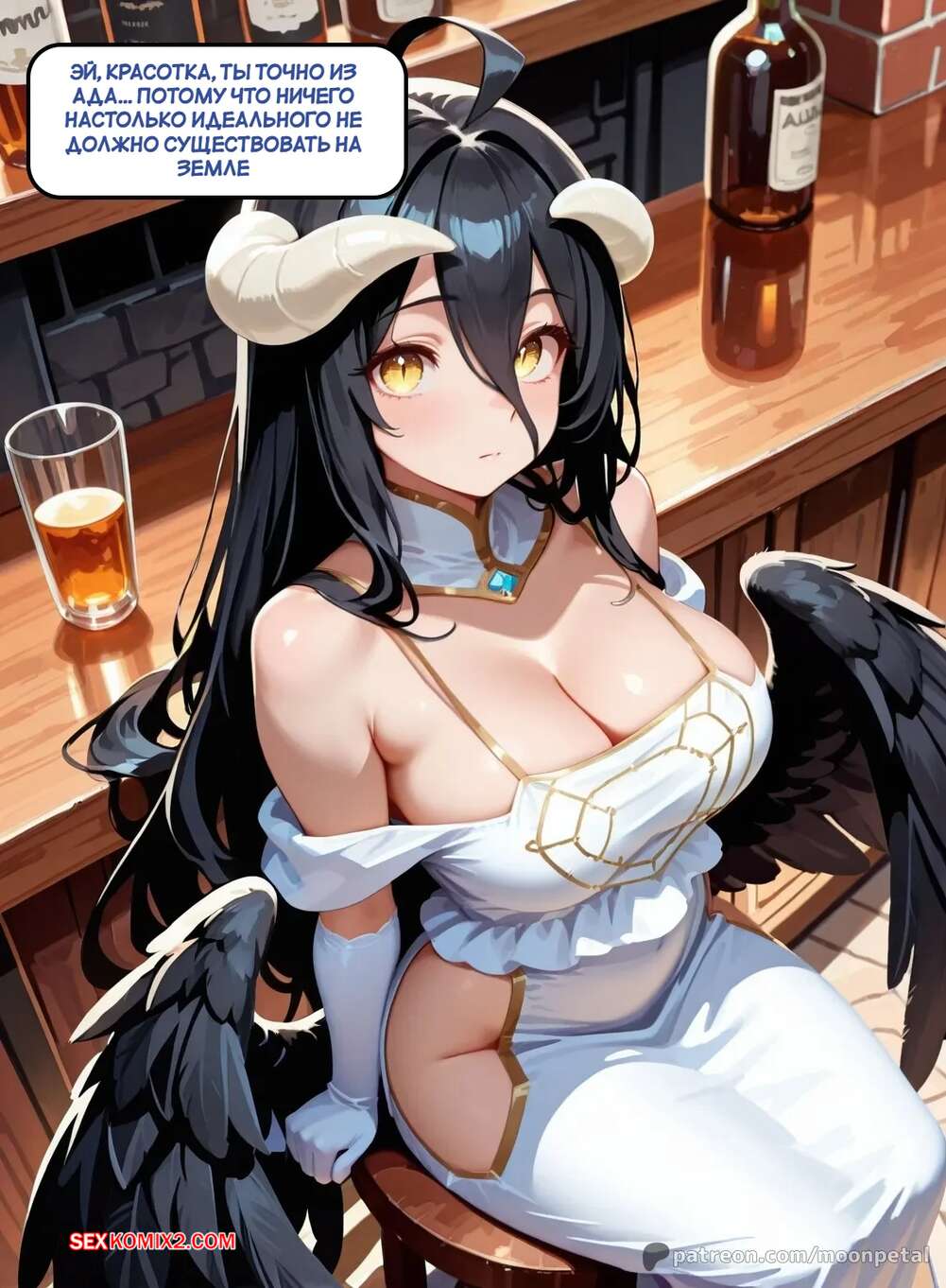Порно комикс Хочешь поспорить. Часть 6. Wanna Make a Bet. Moon Petal Горячая брюнетка выпивала в баре и парень решил к ней подкатить. Девушка разделась и стала у него отсасывать, после чего раздвинула ножки и дала выебать свою пизденку.